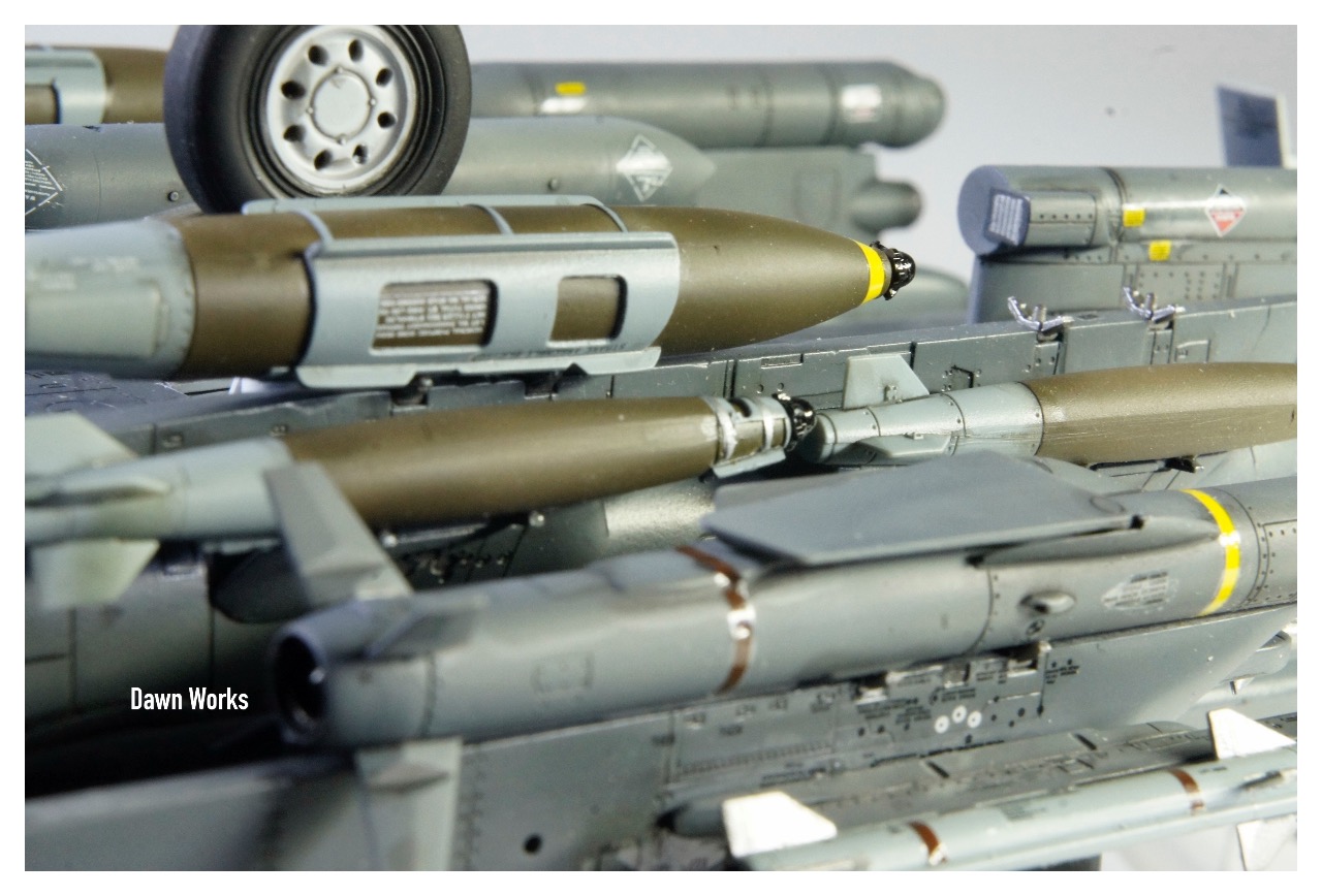 디테일은 두키트 다 훌륭하지만 서로 비교해보면 레벨이 좀더 훌륭합니다. 특별히 어려운 부분은 없었지만 주날개의 분할방식이 튼튼하게 설계하려 했으나 아카데미처럼 통짜로 설계하는것보다 불안합니다. 레벨 키트에는 사이드와인더 L/M형만 들어있습니다. 무장이 빈약한데 다행히 아카데미 키트에는 온갖 무장이 별매제품 못지않게 들어있습니다. 디테일도 좋습니다.