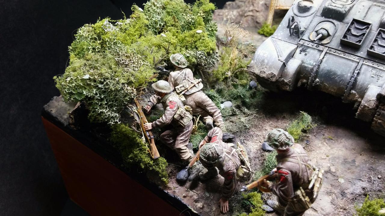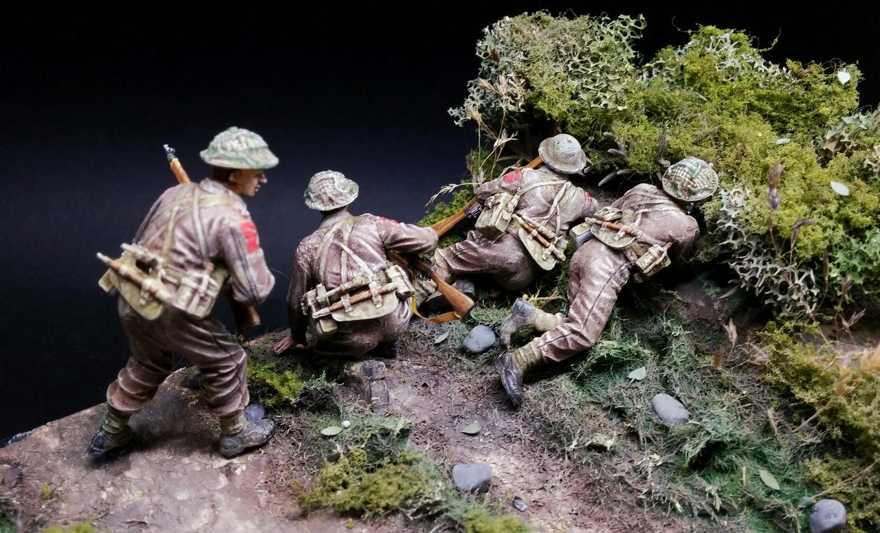 관목 울타리는 햇처 디오라마 때와 같이 만들어주었습니다. 내부를 다른 재료로 보강 한것은 이번이 처음입니다.영국군 분대 편제와는 수가 좀 안맞습니다.사실 다 할수도 있었지만 너무 조잡해집니다.
