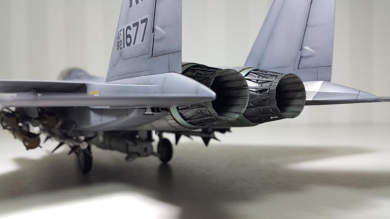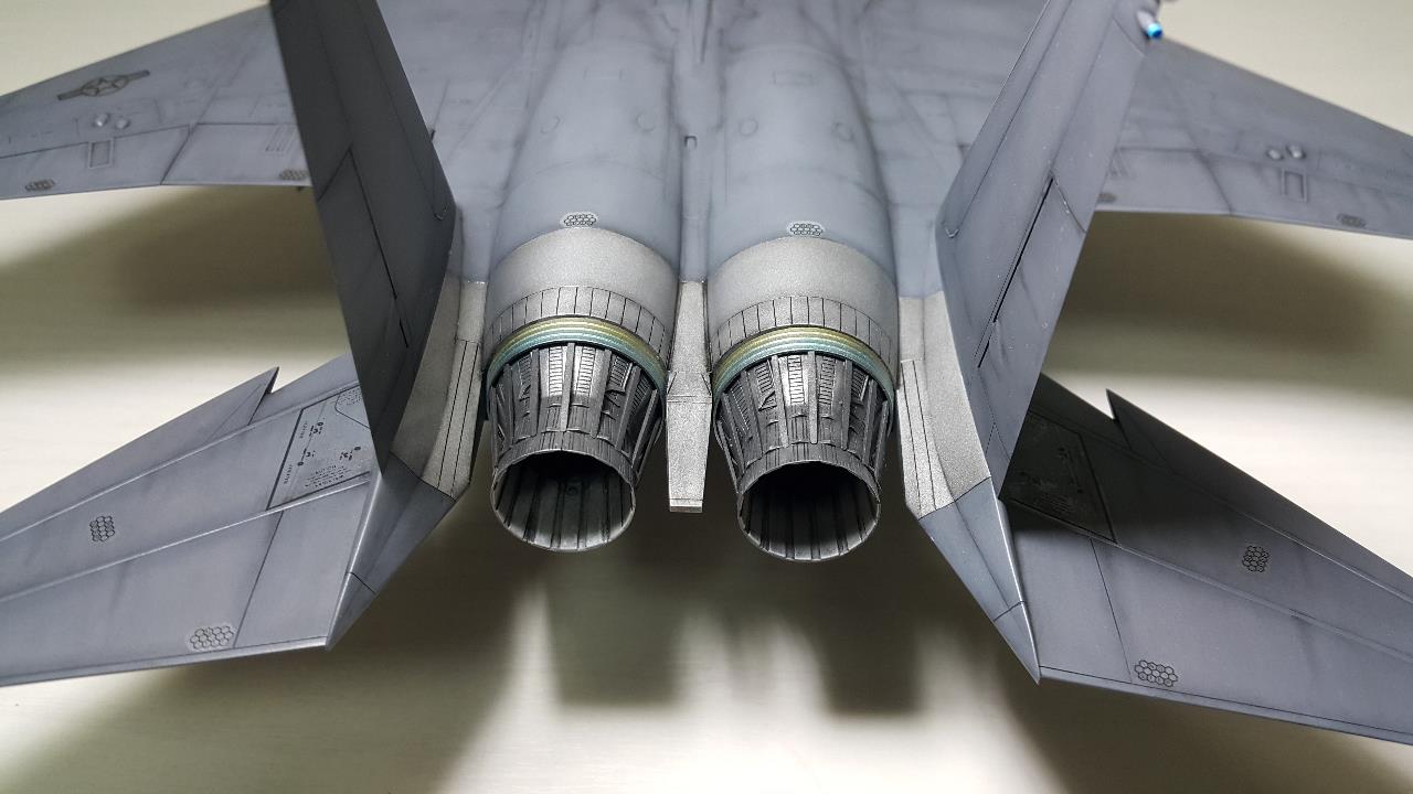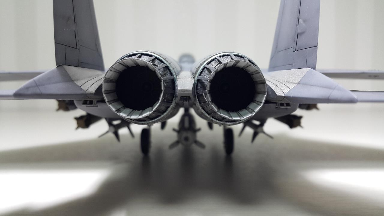 배기노즐 부위의 실버부위는 처음에 군제 금속컬러 특색으로 도색하고, 웨더링을 한답시고 무광마감제를 뿌리고 워싱을 했습니다. 다시 유광 마감제를 뿌렸지만 금속컬러 특유의 발색과 광이 다 죽어버렸네요!