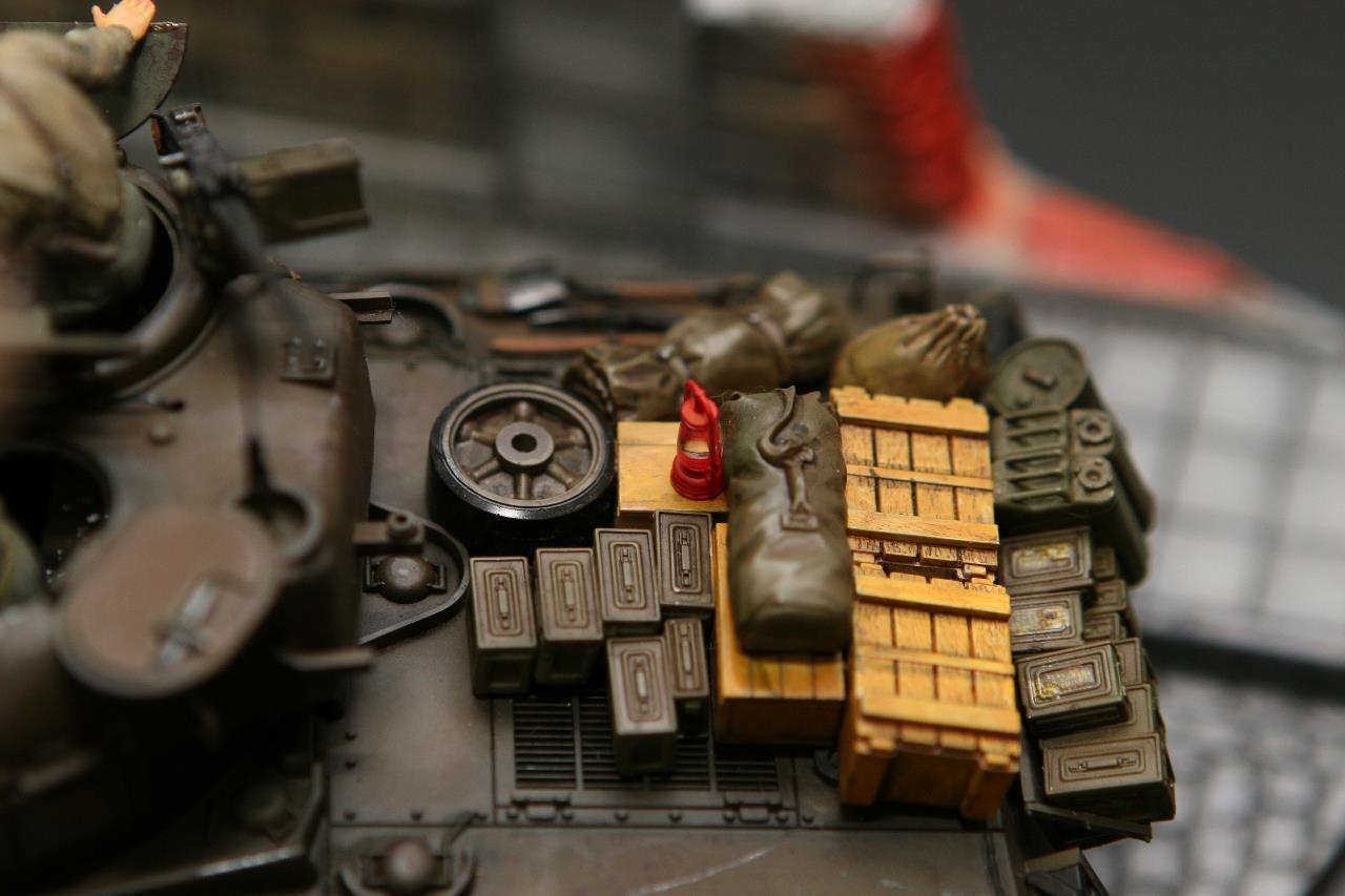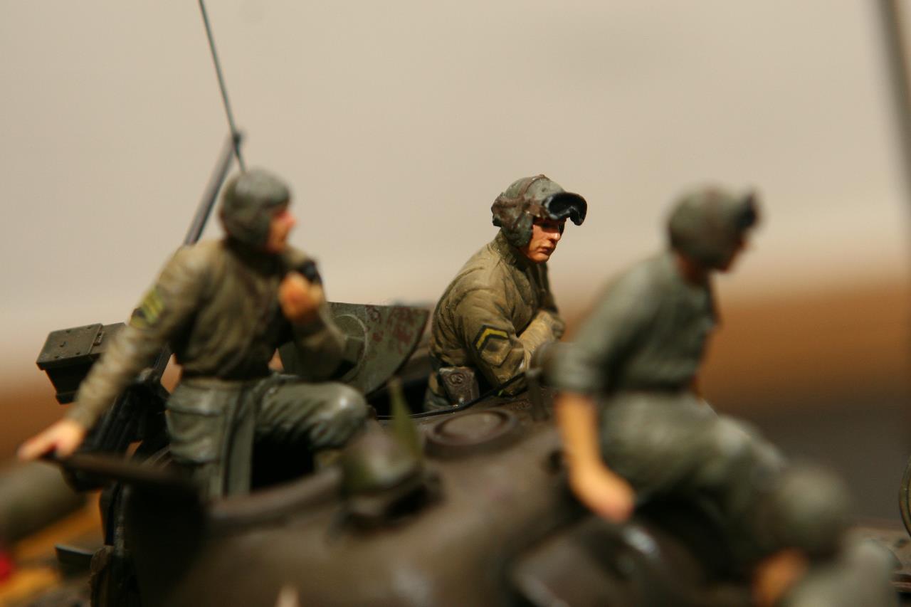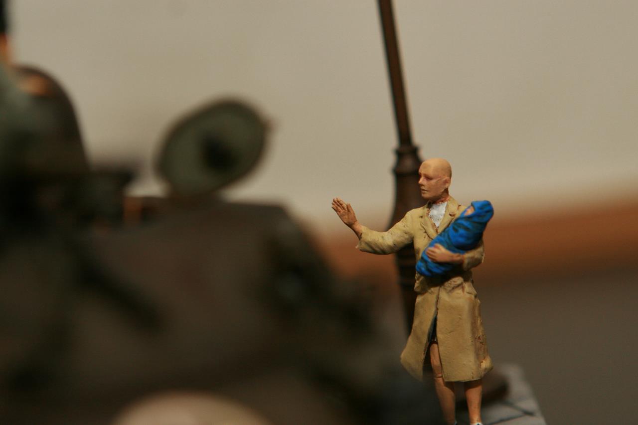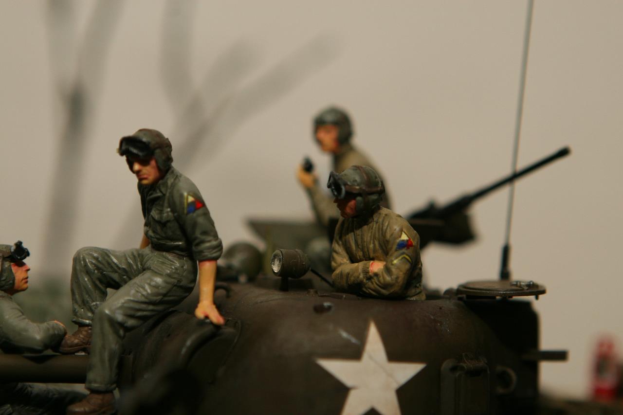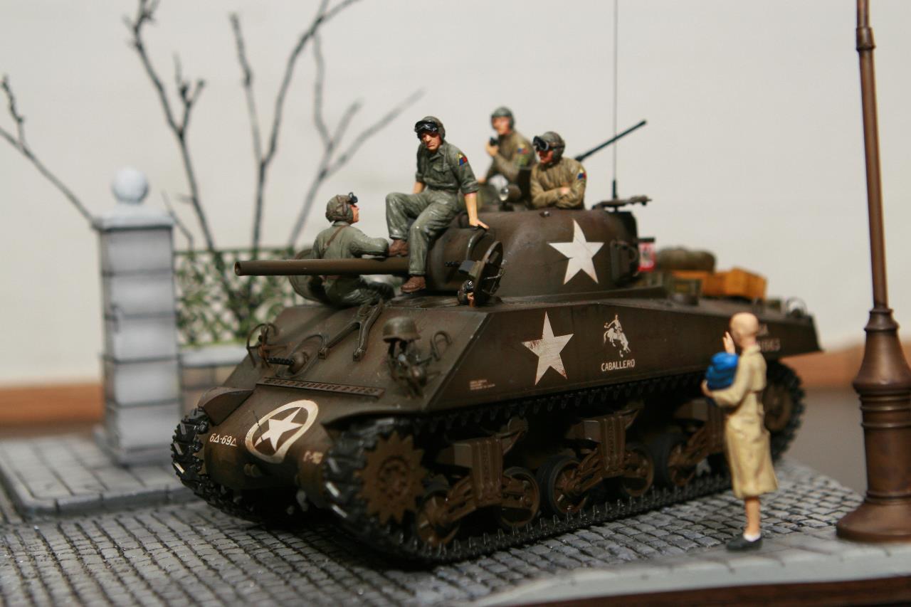 작년 퓨리 개봉이후 잠시 품귀 현상이 있었던 셔먼 이지에잇을 구입하지 못하여 그나마 남아 있던 M4A3로 만든 비넷입니다. 베이스와 전차병은 미니아트 제품을 사용 했고, 옆에 아이를 들고 있는 머리 깍인 여인네는 아마 MB 제품에서 가져 왔습니다. 탄 나무를 만들려고 이생각 저생각 하다 결국 장기 슬럼프에 빠져 이번에 대충 완성 했습니다. 봐주셔서 감사합니다.