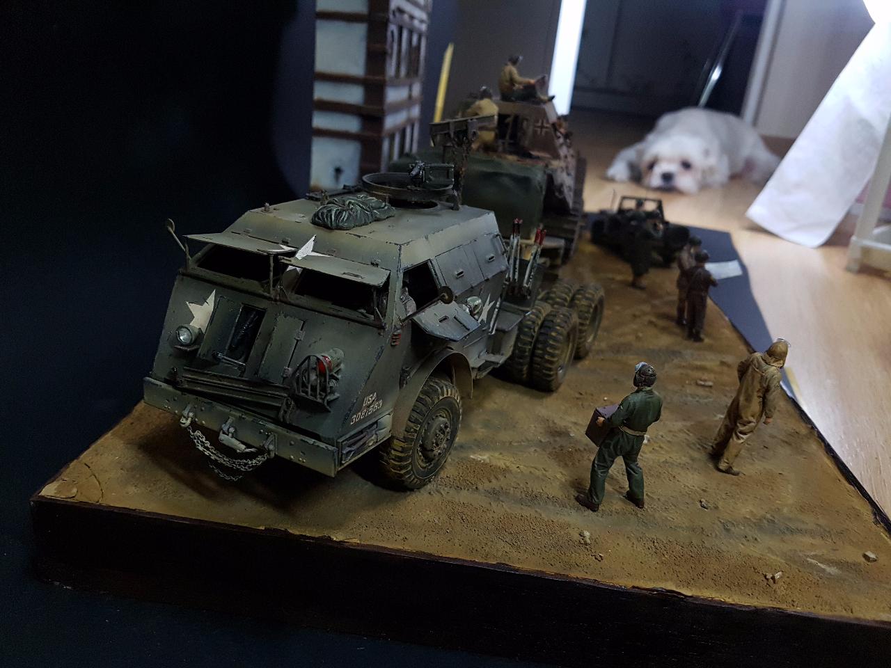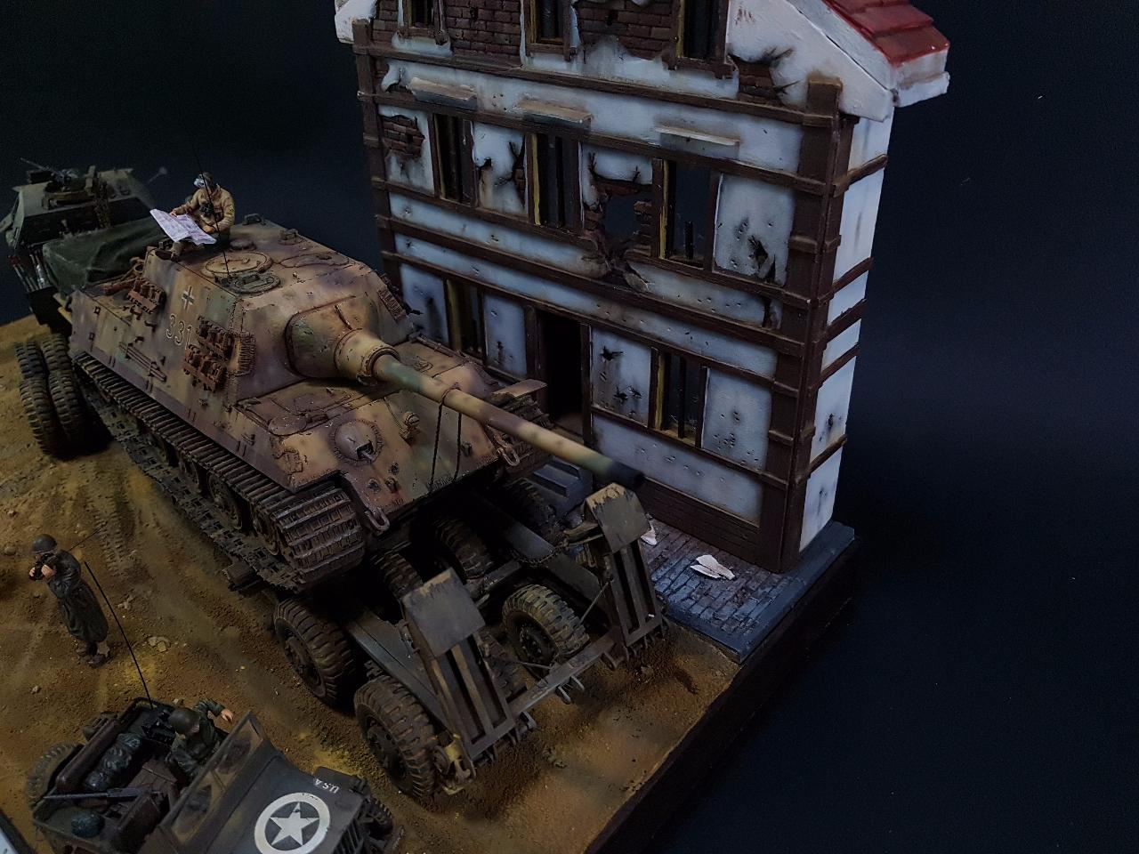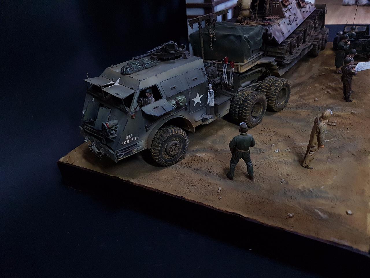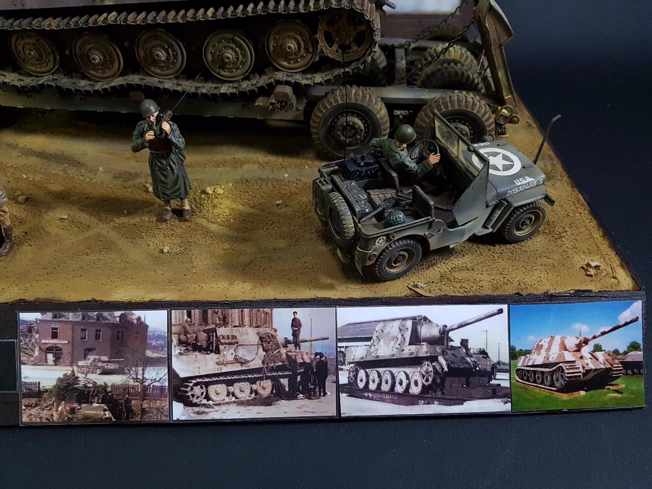 독일의 슈벳찡앤에서 미군에게 항복하여 노획되는 독일의 653전차대대의 야크트 티거 331호를 재현했습니다. 역사적인 사진을 근거로 해서 최대한 비슷하게 꾸며보았구요.. 사진만 표현하기엔 허전해서 여러 인형들을 투입시키면서 각색했습니다. ^^ 이후 야크트 티거 331호는 바다건너와서 미국의 에버딘 전차박물관에 전시되어 있습니다. 직접가시면 확인도 가능합니다. ㅎㅎ