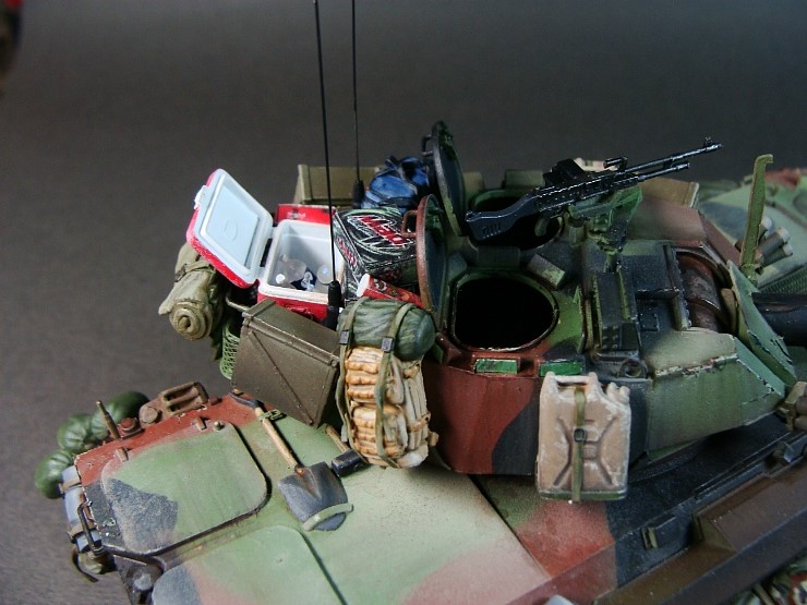 장비품을 비교적 많이 올린탓에 세부색칠에 꽤 고생했습니다..차체도색 30%에 새부도색 70%정도 작업비율쯤 될듯 싶은데..예전처럼 드라이브러싱으로 해버리면 쉽게 끝났겠지만..아크릴과 유화로 하나하나 그리다보니 작업량이 상당했습니다..