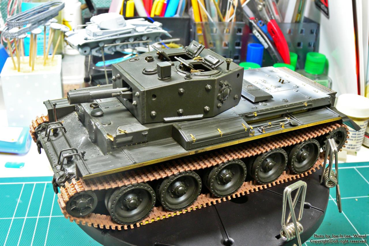 타미야 키트를 베이스로 Aber PE set와 모델카스텐 트랙, 그리고 Alpine제 영국군 인형, 타스카 영국군 셔먼에서 가져온 전차병 인형과 잡다한 악세사리 세트로 꾸며봤습니다.