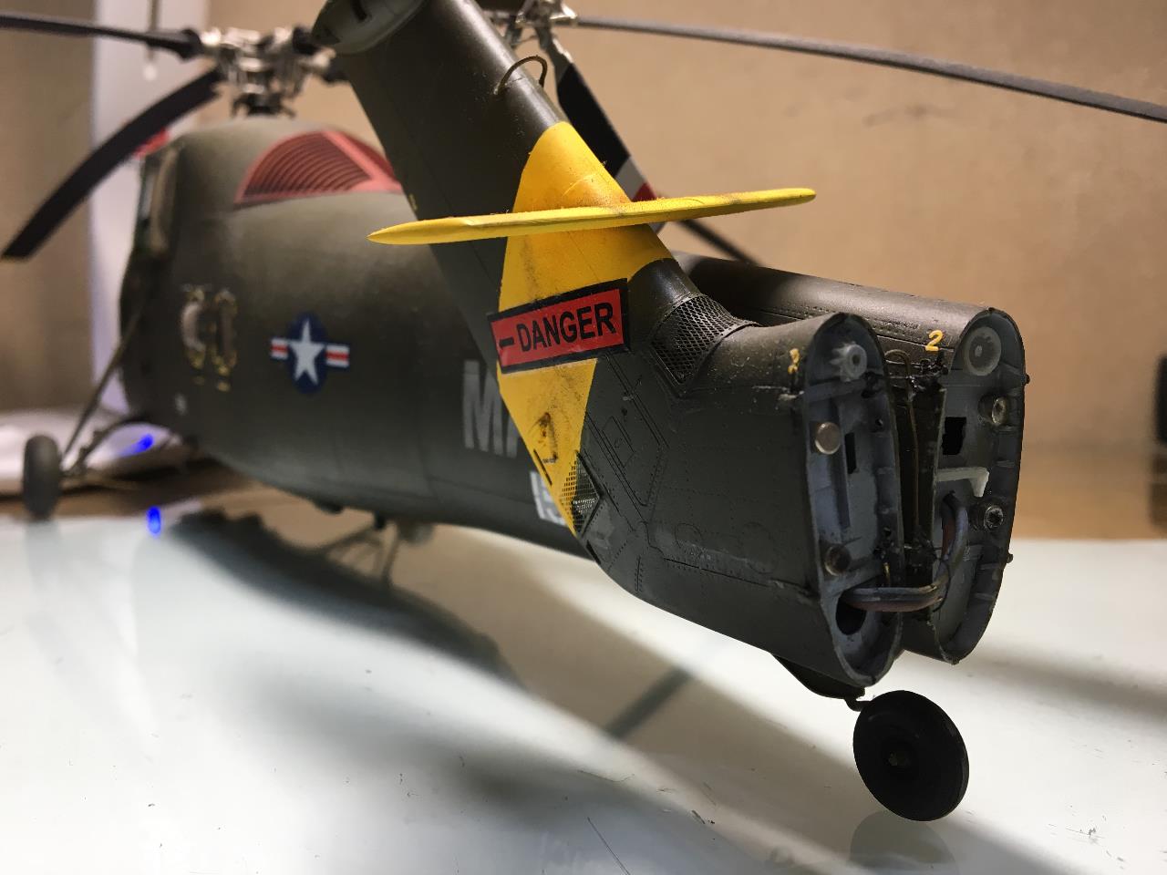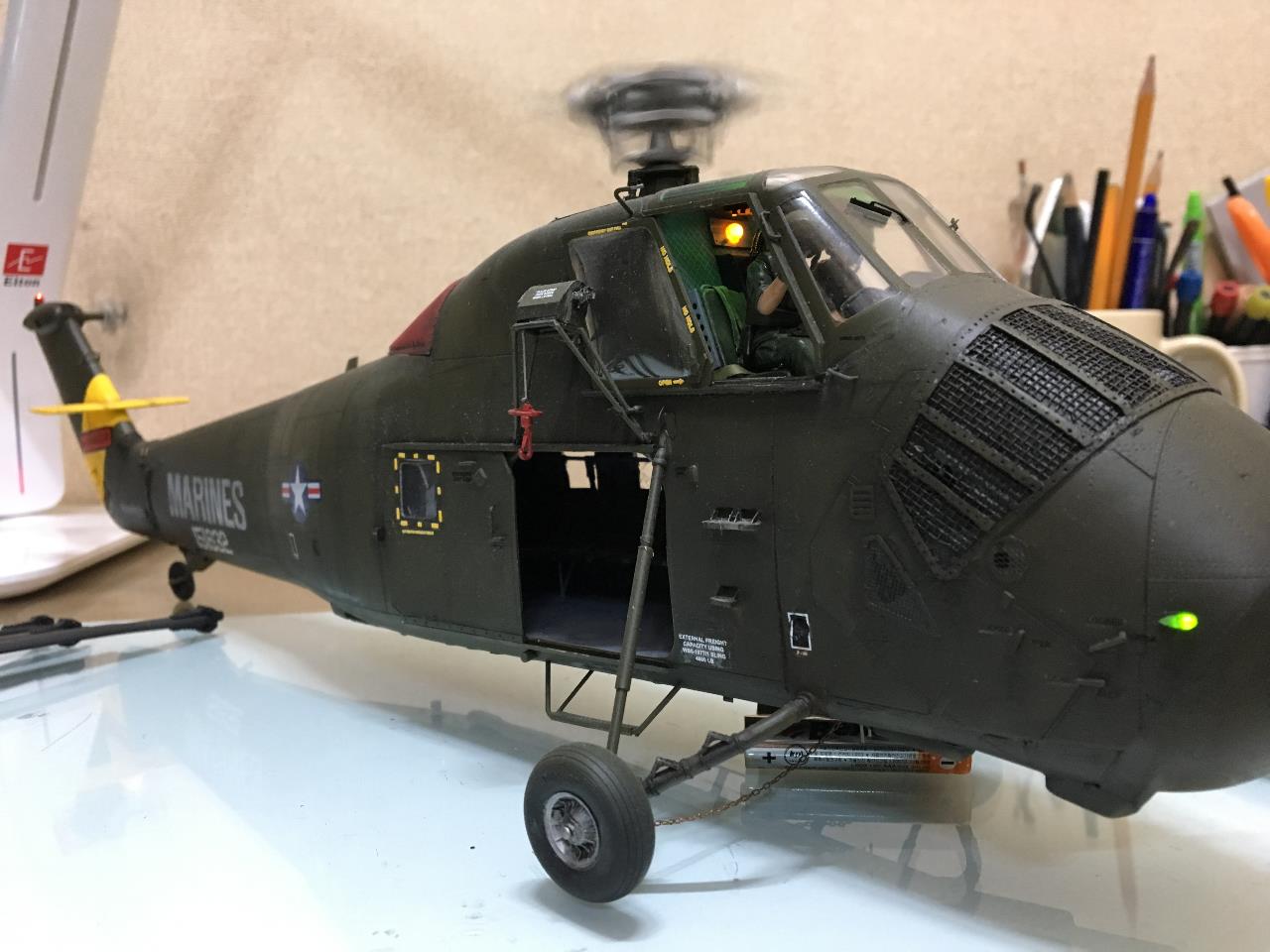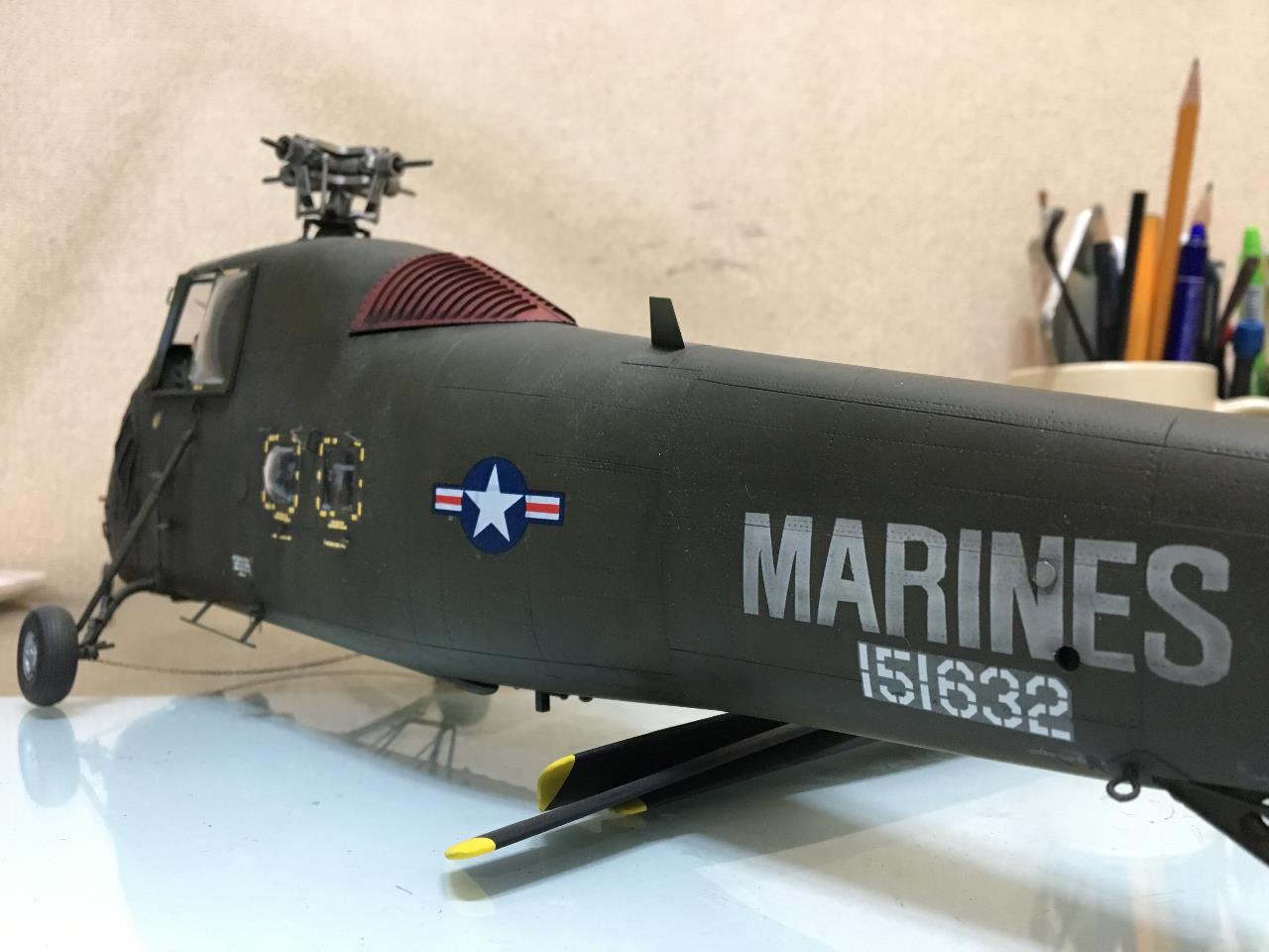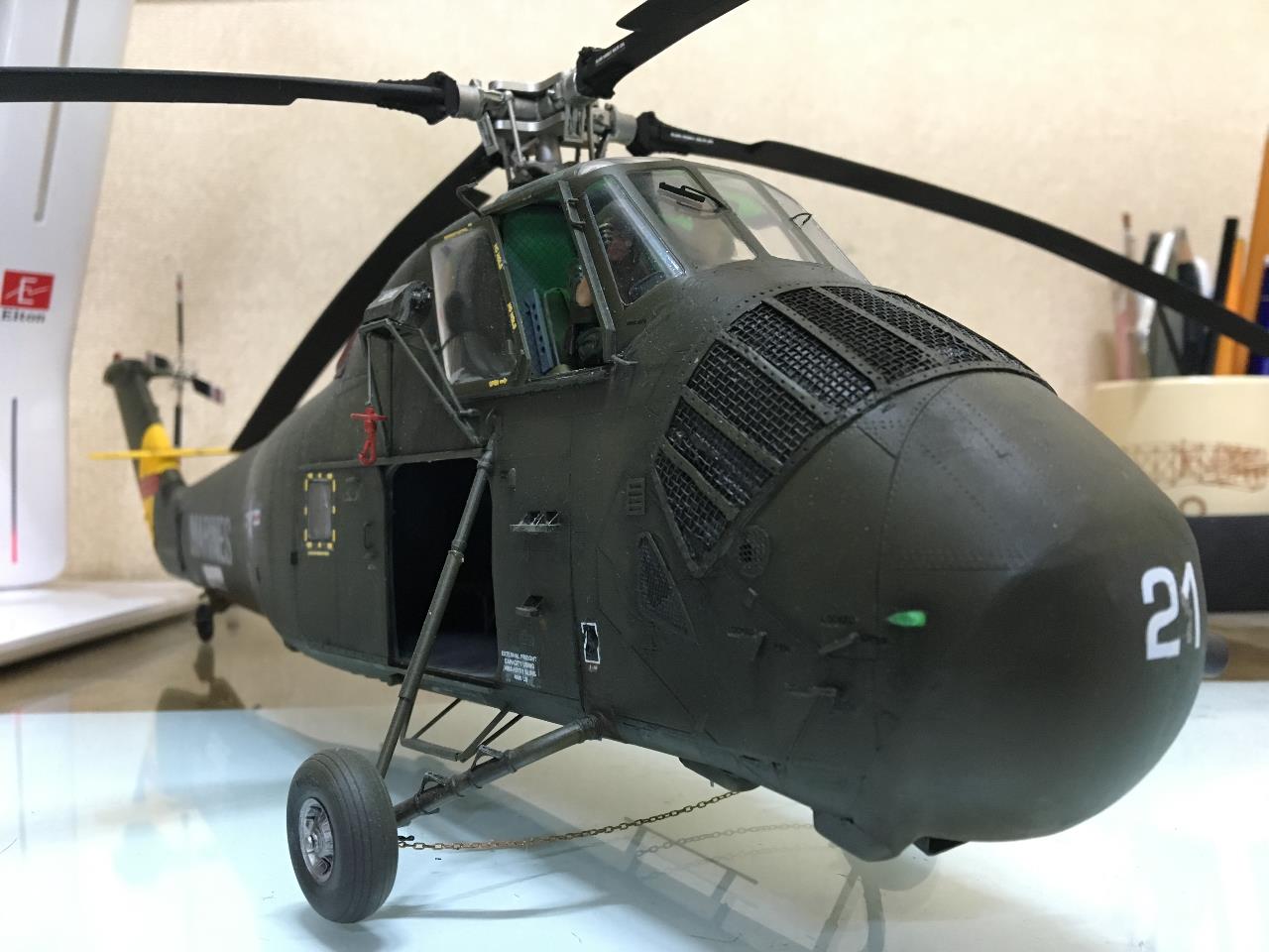제일 큰 차이점은 앞부분인데, 일단 H-34를 라이센스한 웨섹스는 개스터빈엔진이라 머플러가 양 옆으로 크게 나와있습니다. 코 부분도 아래로 더 돌출되어있구요. 이 부분을 싹 밀어버리고 머플러도 피스톤엔진용으로 자작해 줍니다.