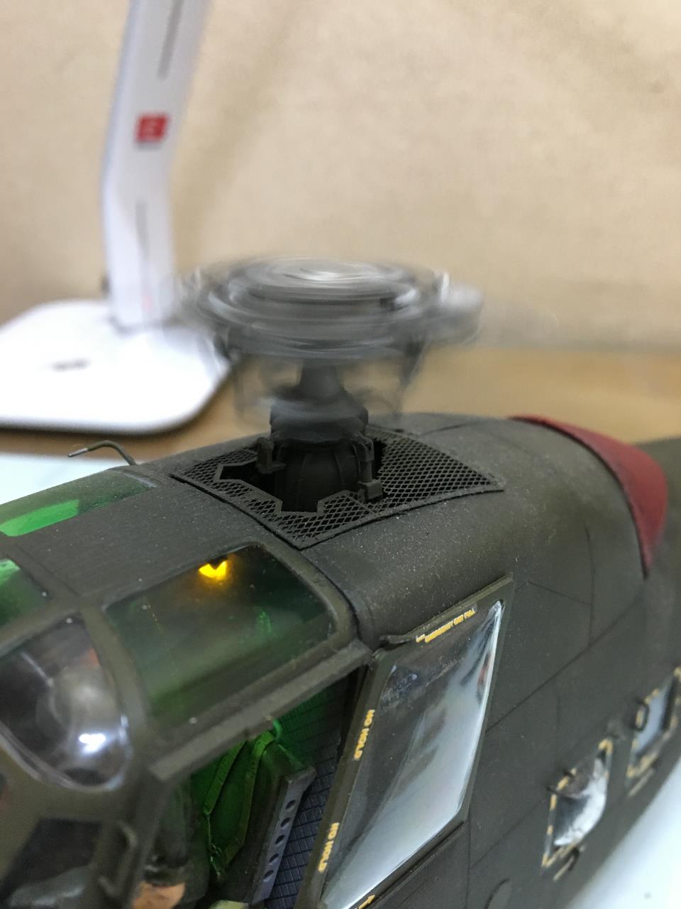 메인로터의 블레이드만 탈착식으로 개조하여 액션시엔 블레이드를 떼어냅니다. 대형기체라 블레이드가 아래로 처져있는데 이게 회전수에 도달하여 up 되기 전까지 동체 뒷부분을 자꾸 때립니다 ㅠ 자칫하여 테일로터를 씹기라도 한다면..