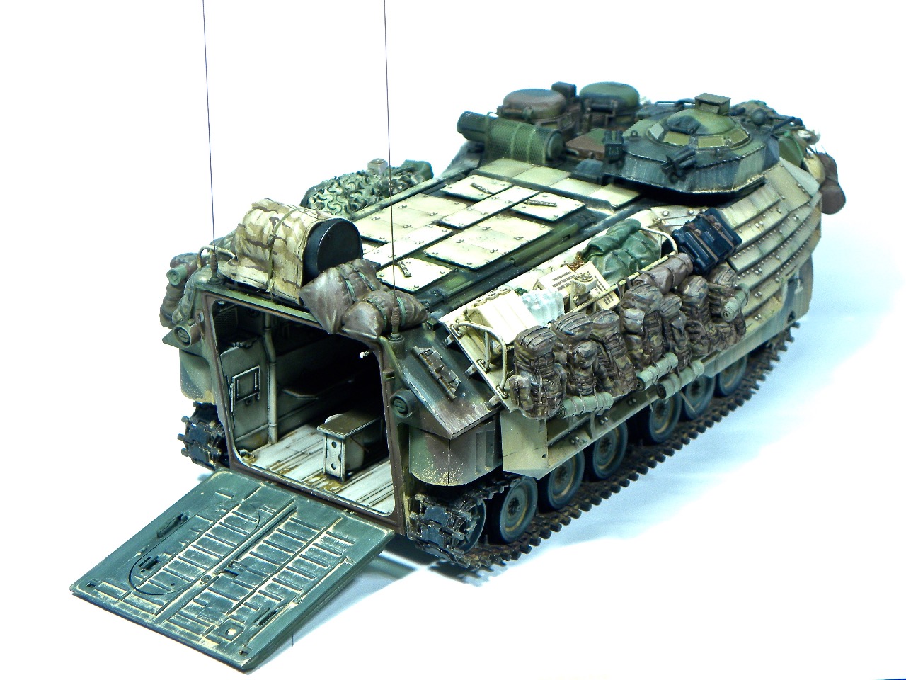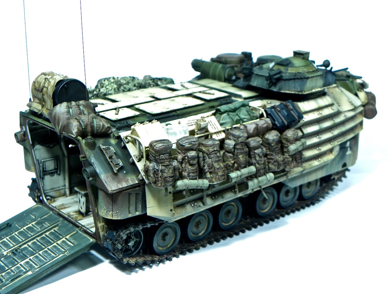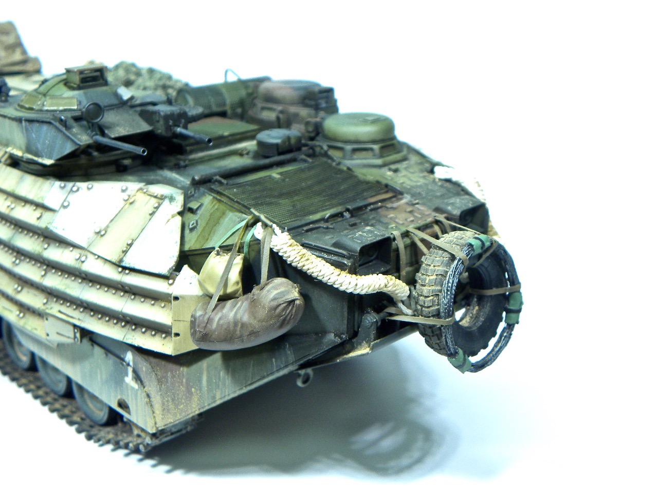 하비보스사의 AAVP-7A1입니다..프리울 트랙, 레전드사의 stowage 세트, 그외 여기저기 굴러다니던 악세사리를 올려주었고, IPP사의 도료 및 MIG사의 피그먼트로 마무리 하였습니다. 장비품들의 도색은 모두 아크릴을 사용하였습니다.