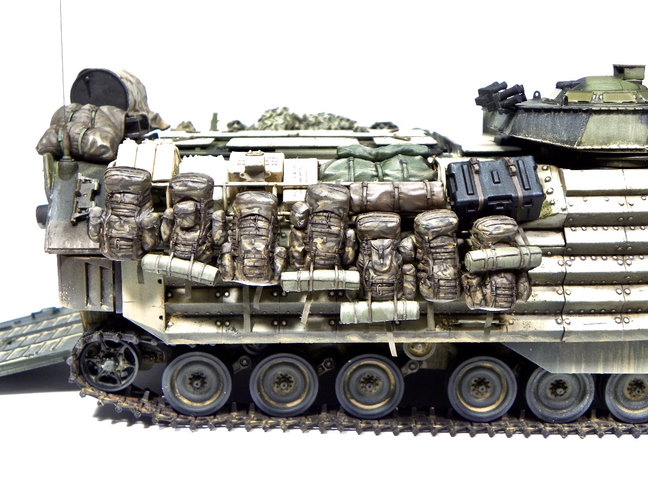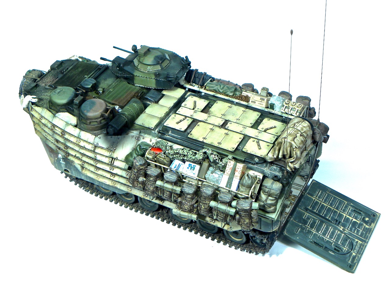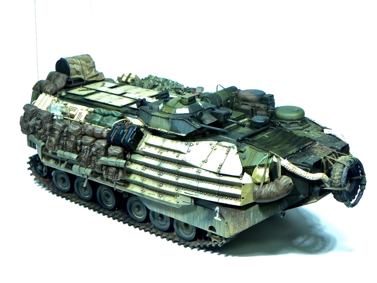 하비보스사의 AAVP-7A1입니다..프리울 트랙, 레전드사의 stowage 세트, 그외 여기저기 굴러다니던 악세사리를 올려주었고, IPP사의 도료 및 MIG사의 피그먼트로 마무리 하였습니다. 장비품들의 도색은 모두 아크릴을 사용하였습니다.