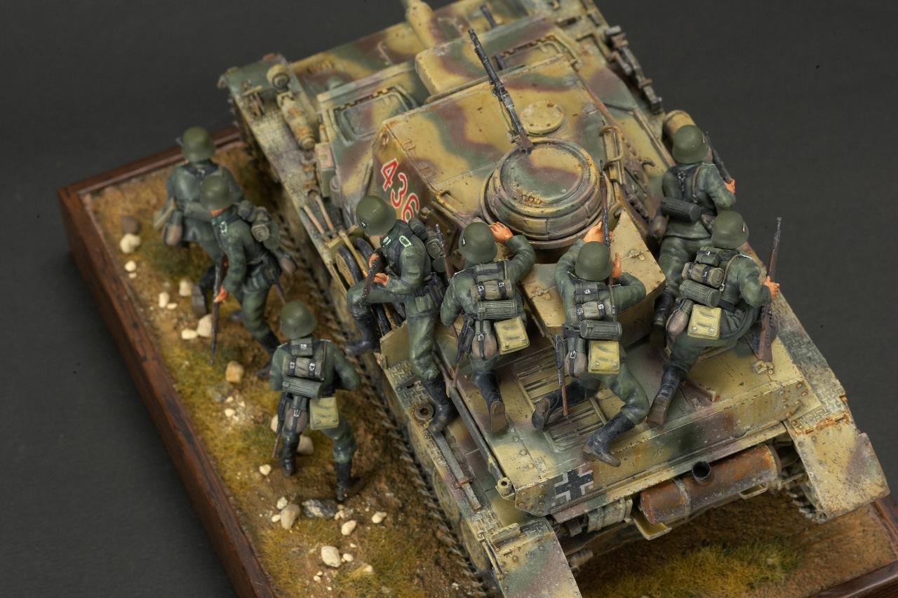 안녕하세요. 옛날 제일과학에서 타미야 카피판으로 독일진격부대 라는이름으로 나왔던 오래 됐지만 친숙한 킷입니다. 당시 국산으로 발매되는 4호전차가 없어 예제처럼 4호전차에 피규어를 올려 주는게 로망이기도 했지요. 얼마전 4호전차를 완성한김에 오래된 꿈을 한번 이루어 보고자 타미야판 German Panzer Grenadiers set 제작하여 아카데미 4호전차에 올려 봤습니다. 도료는 타미야 아크릴과 미그 아크릴 Flash Tone Set 를 사용했습니다.