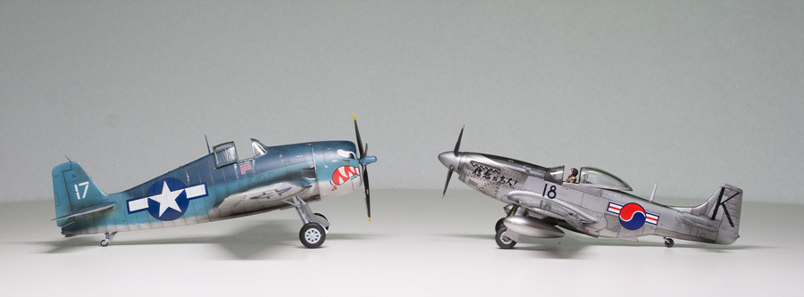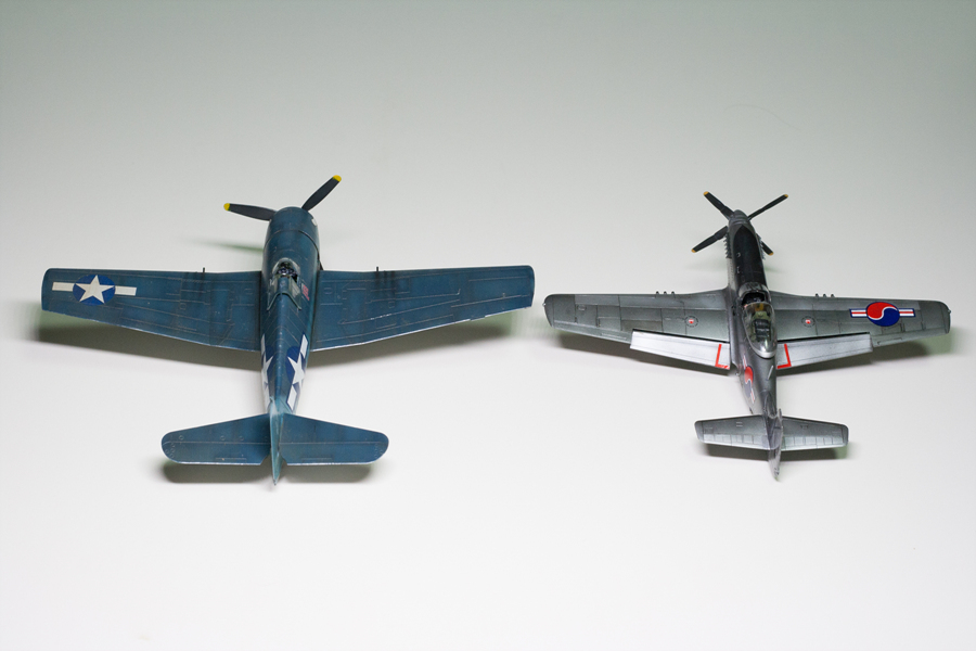 바로 전에 완성한 헬캣과의 덩치비교입니다. 핼켓이 함재기임에도 불구하고 떡대가 더 크네요.