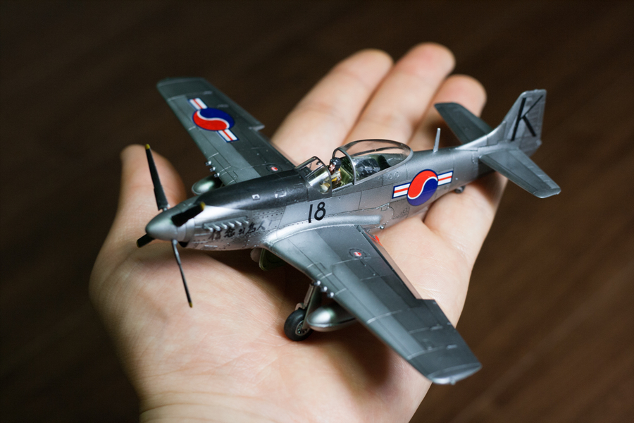 아카데미의 1/72 스케일 F-51(P-51) 머스탱 입니다.한국 공군의 전설적인 기체인 "신념의 조인" 마킹으로 만들어봤습니다. 처음으로 은색 기체에 도전해봤는데 역시 은색은 어렵네요.