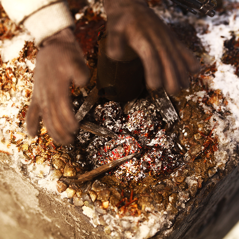 디오라마 모닥불에도 조명을 연결하여 사진으로는 잘안보이지만
