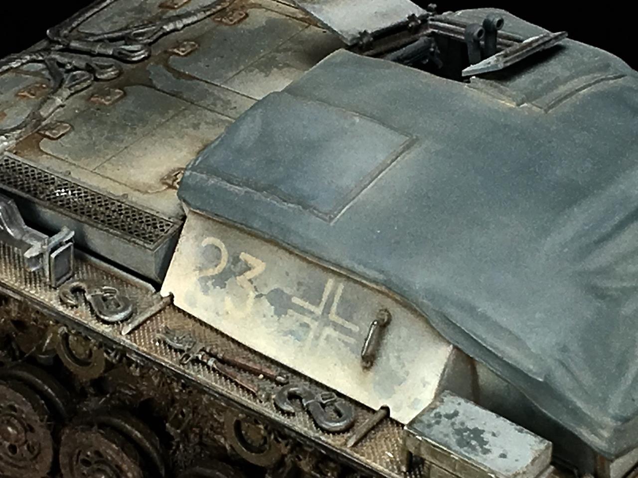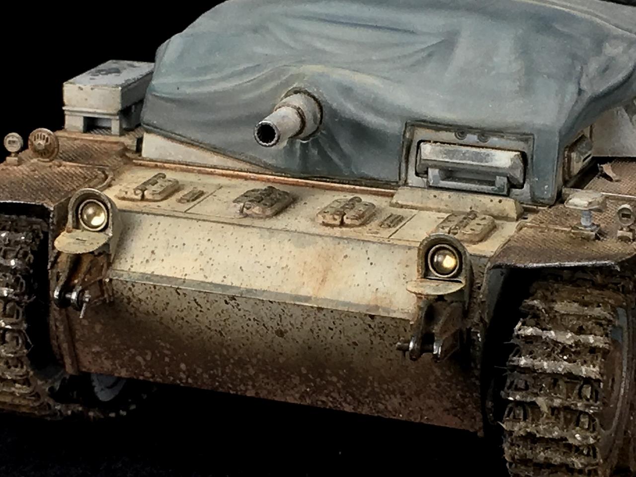 타미야의 3호전차에 Panzerart의 레진캔버스, 마스터클럽 궤도 남은 에칭과 레진 악세서리를 사용하여 만들었습니다