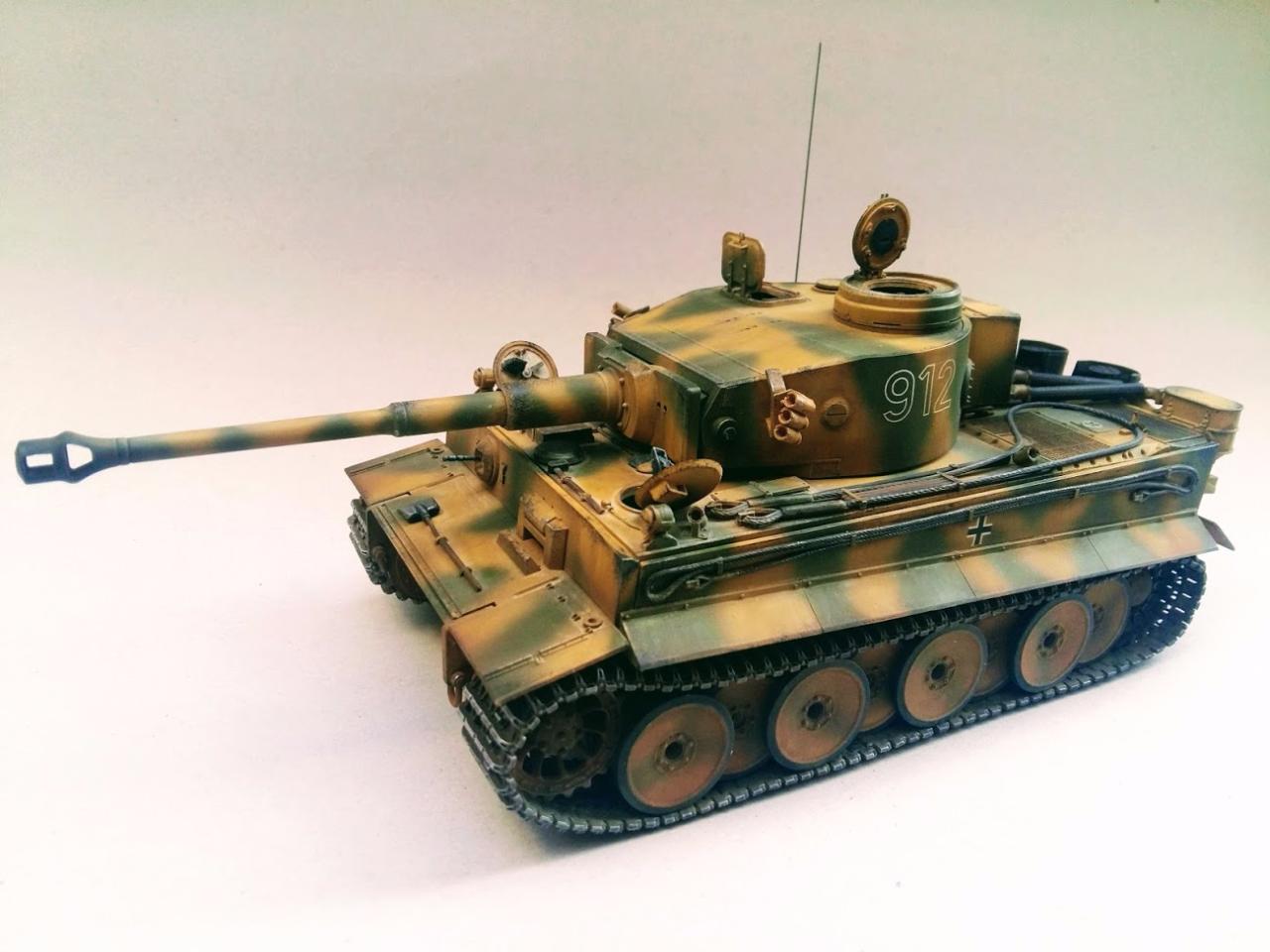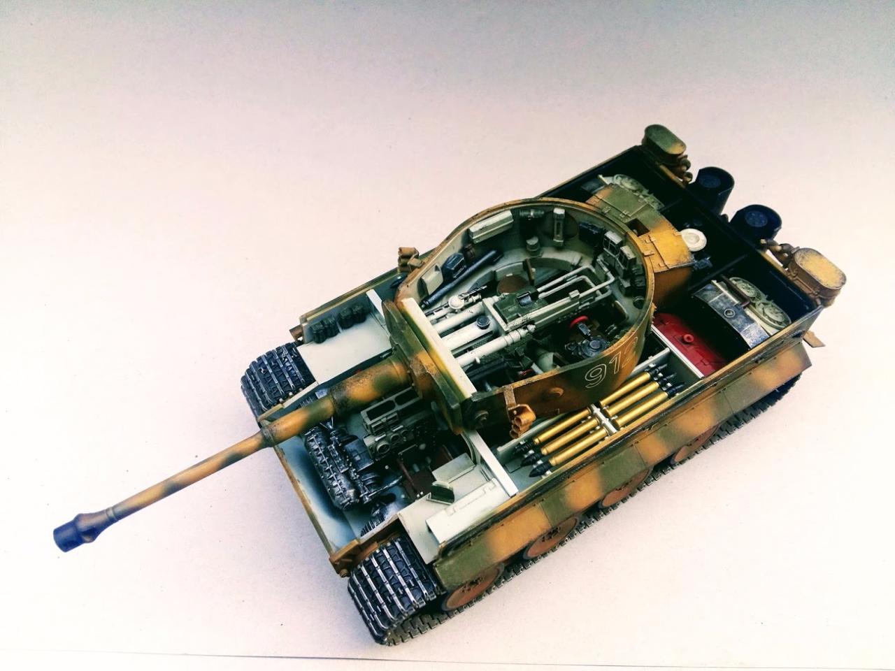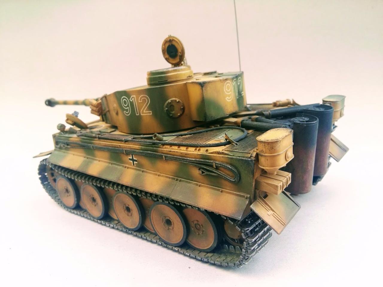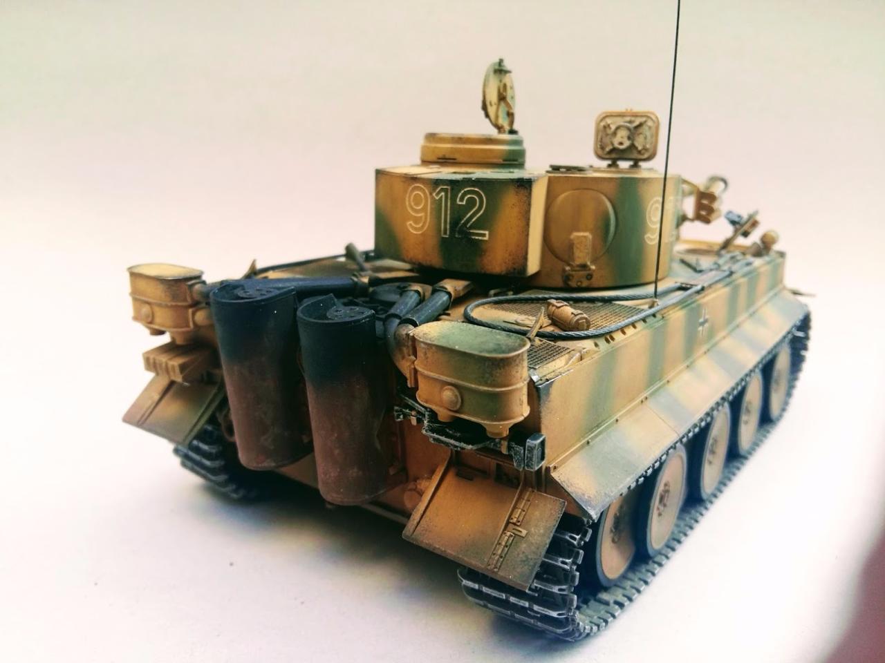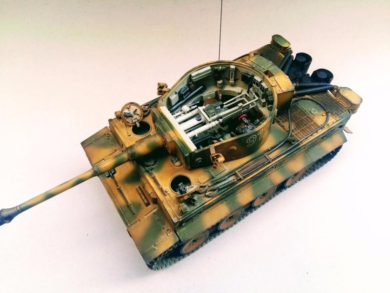 타이거 초기형 만들었습니다 락카 다크엘로우 다크그린 뿌리고 에나멜 갈색 검은색 섞어서 워싱하였고 피그먼트는 궤도 안쪽으로 조금만 발라주었습니다 내부도색은 시간날때마다 조금씩 진행하여 마무리하였습니다