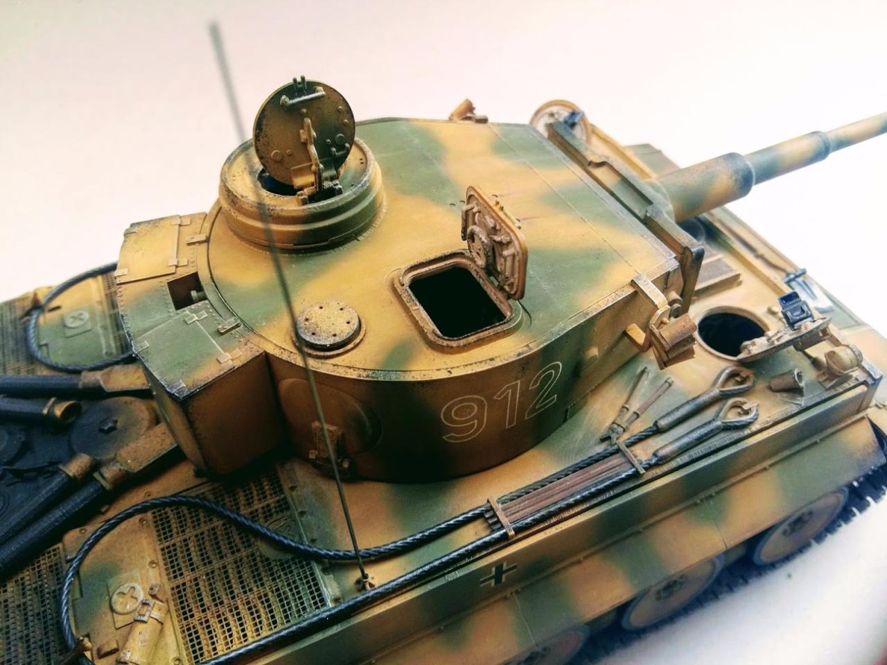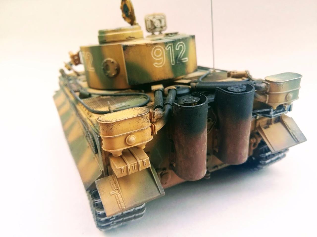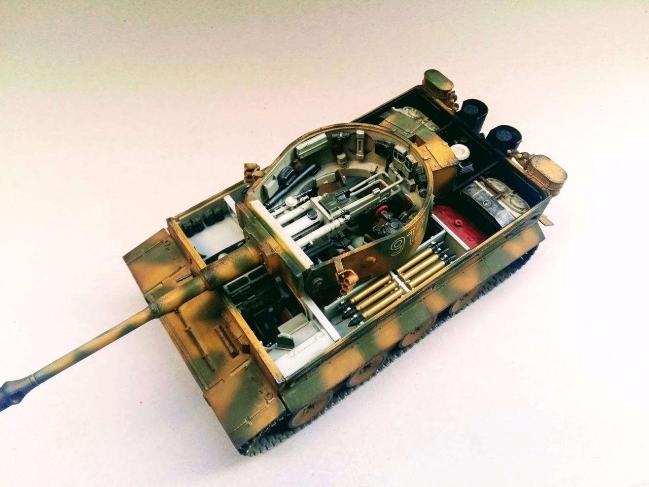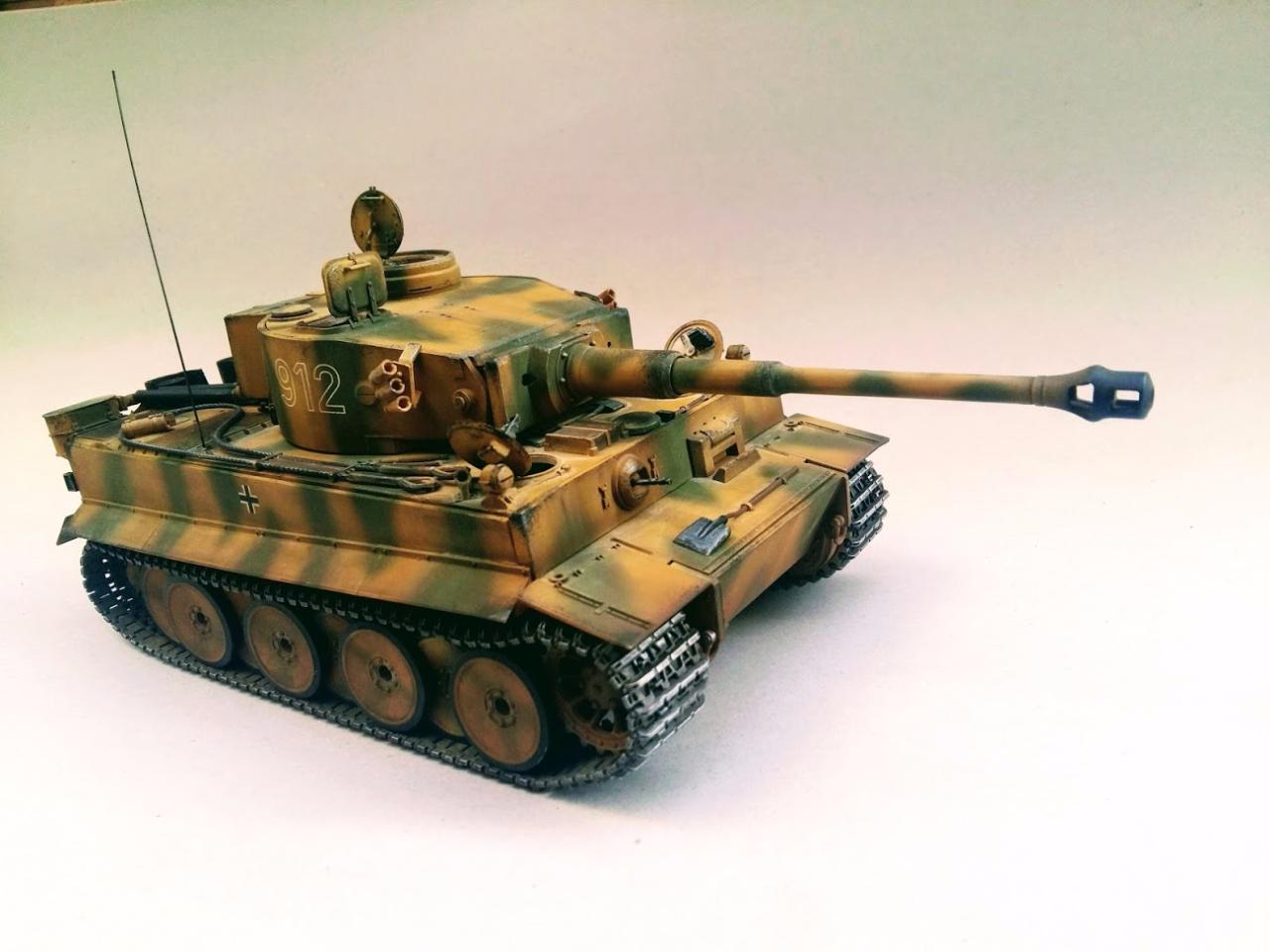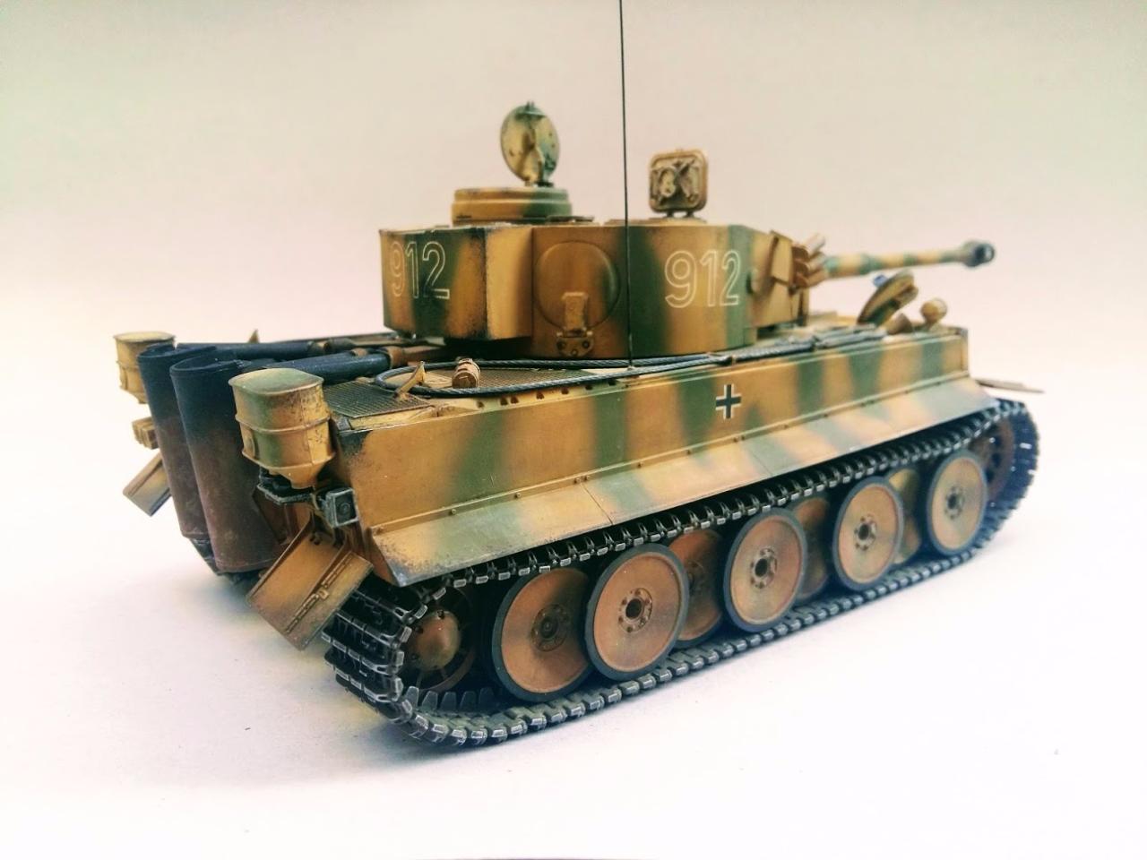 타이거 초기형 만들었습니다 락카 다크엘로우 다크그린 뿌리고 에나멜 갈색 검은색 섞어서 워싱하였고 피그먼트는 궤도 안쪽으로 조금만 발라주었습니다 내부도색은 시간날때마다 조금씩 진행하여 마무리하였습니다