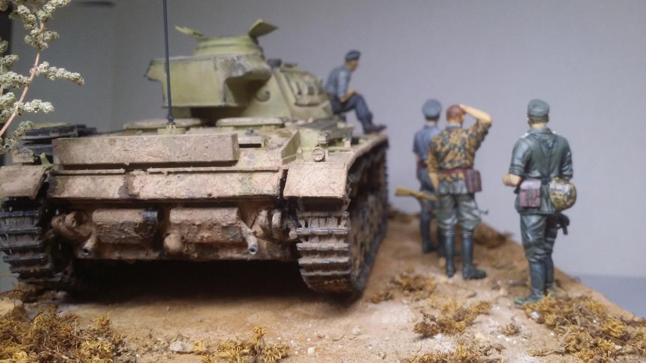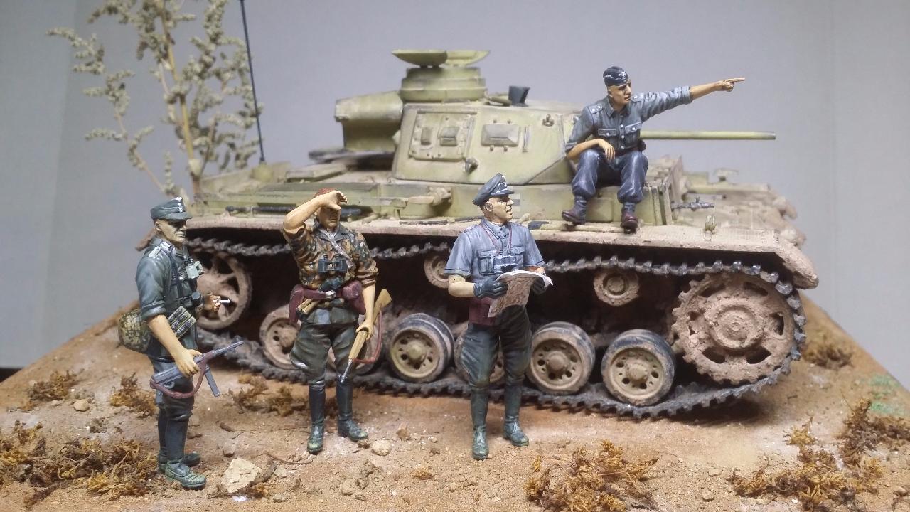 전황을 설명을 정찰전차의 병사로부터 설명을 듣는 장면입니다. 여기에 사진이 없지만 인형킷트의 박스아트 모습을 그대로 재현했습니다.