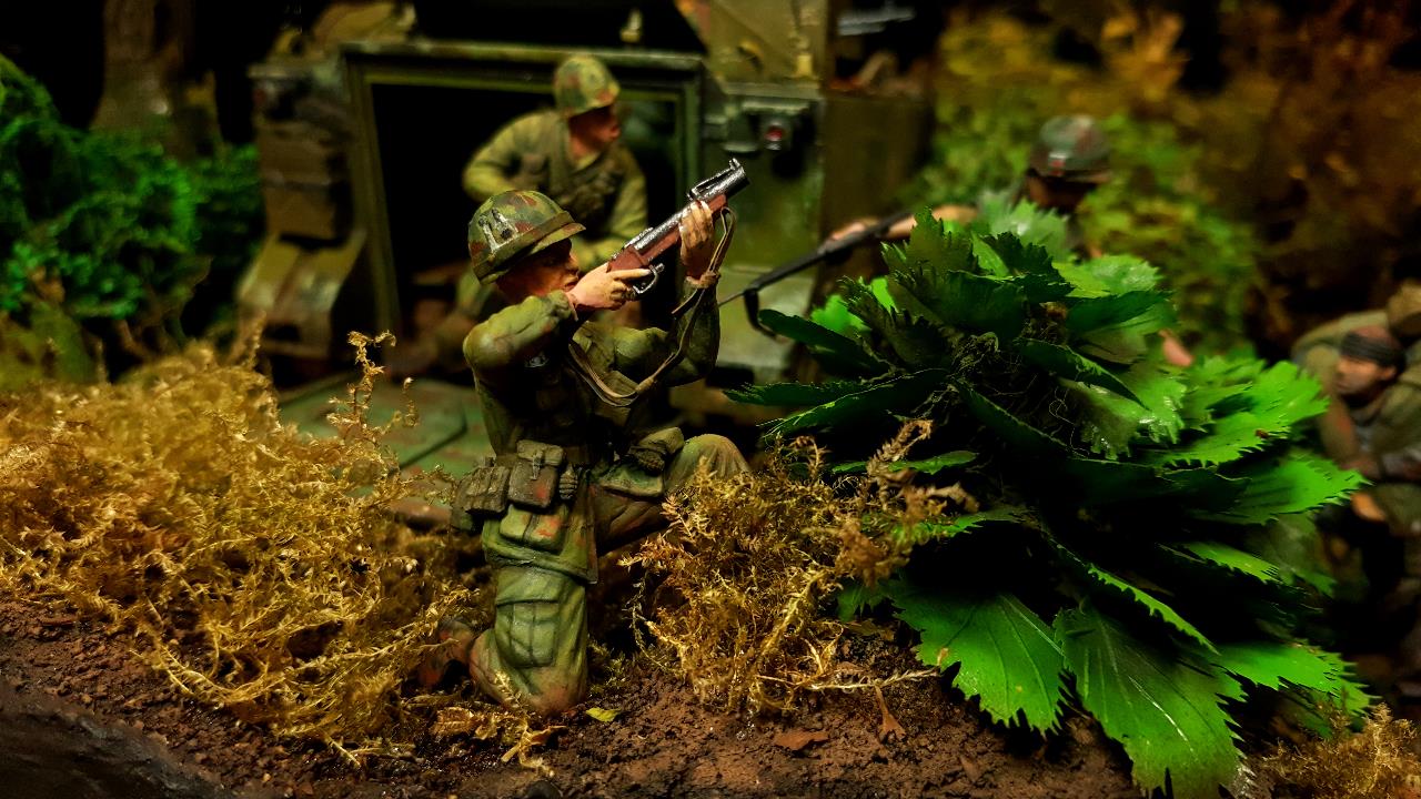 사수들이 딱 맞는 자세가 없어 팔이며 손목 손가락이 안맞아서 총을 쥔 상태로 만들어 놓고 도색을 했습니다