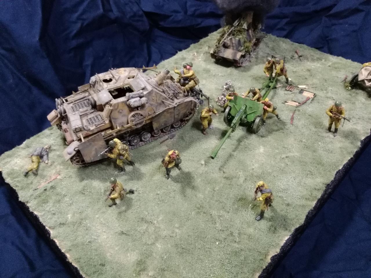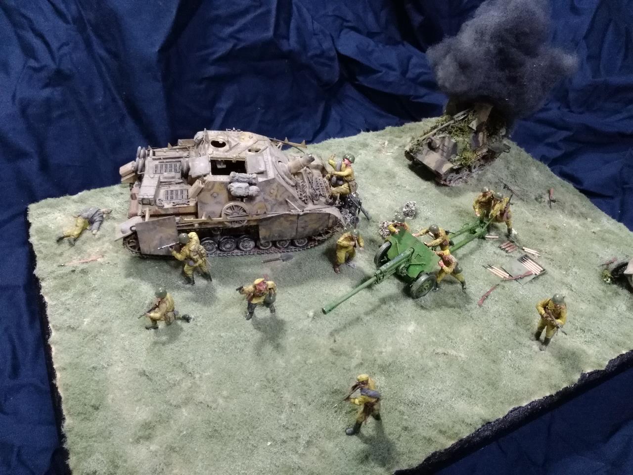 미니아트 인형과 기타 인형들을 이용해서 긴박하게 소련군이 포를 돌려야 하는 상황을 만들어 봤습니다