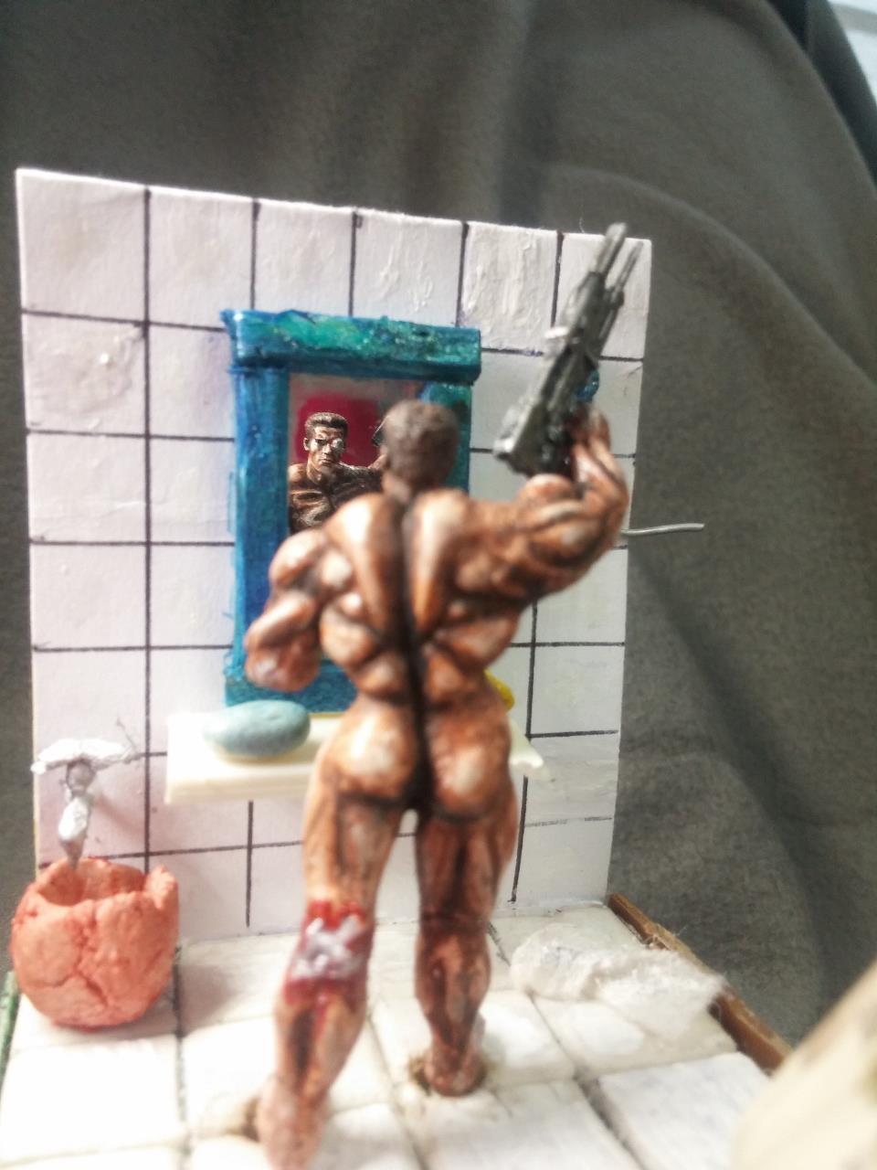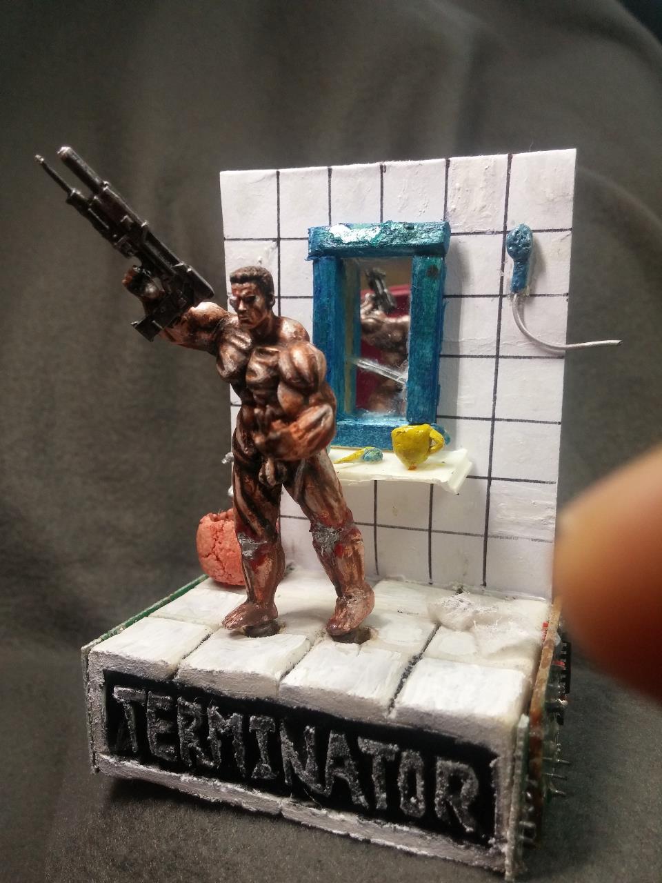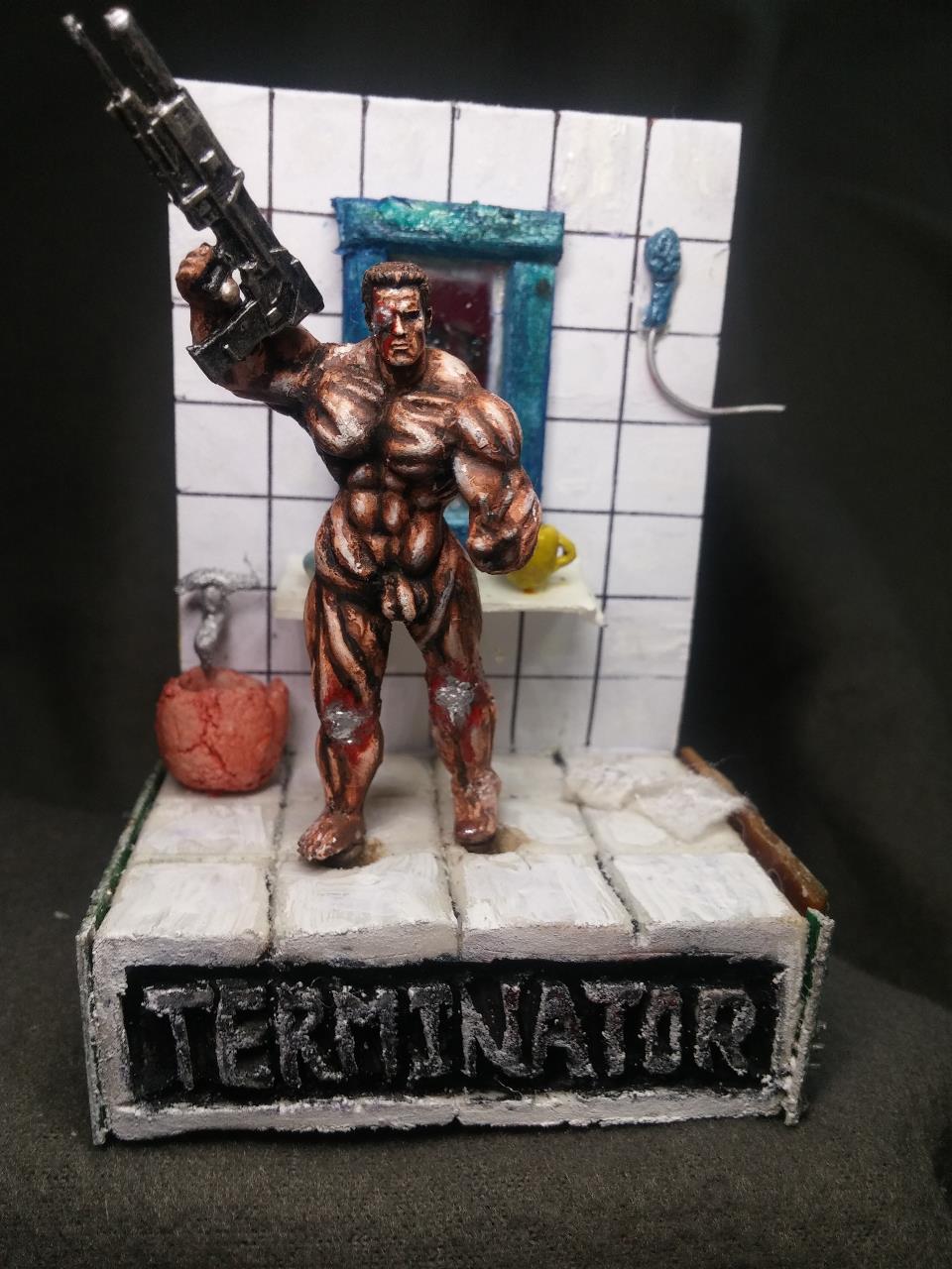 친구 인수로부터받은 터미네이터! 누드형을 선물받았습니다.터미네이터를 내맘대로 개조 변형시켜 보앗습니다.본래의도는 샤워기를뿌리는 장면이었는데 물표현이 쉽지안아 그냥 무기를 장착시켜주었습니다.인수의 조형솜씨가 뛰어나 도색하는데 불편함이 없이 재밌었습니다.1:6스케일을 축소 복제로 1:35까지 축소 복제한 제품 입니다.<엄청난기술력>