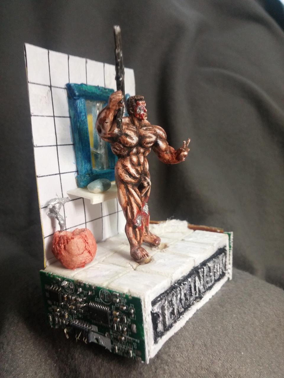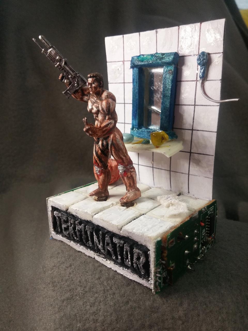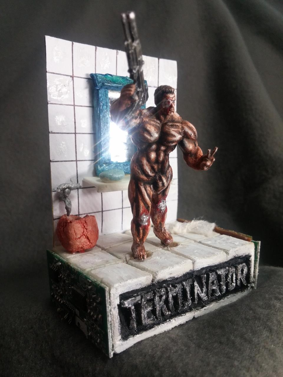 친구 인수로부터받은 터미네이터! 누드형을 선물받았습니다.터미네이터를 내맘대로 개조 변형시켜 보앗습니다.본래의도는 샤워기를뿌리는 장면이었는데 물표현이 쉽지안아 그냥 무기를 장착시켜주었습니다.인수의 조형솜씨가 뛰어나 도색하는데 불편함이 없이 재밌었습니다.1:6스케일을 축소 복제로 1:35까지 축소 복제한 제품 입니다.<엄청난기술력>