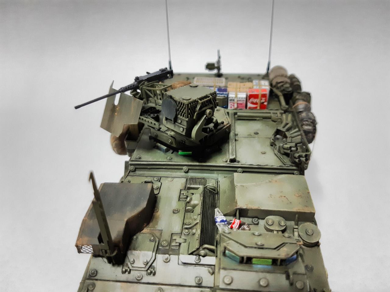 디테일업은 m2기관총 총열만 별매황동제품으로 바꾸어 주었구요 안테나는 황동선으로, 고정끈등은 마스킹 테이프등으로 만들어 주고 여기저기서 주운 장비품으로 마무리 했습니다~