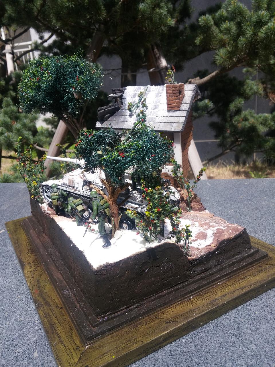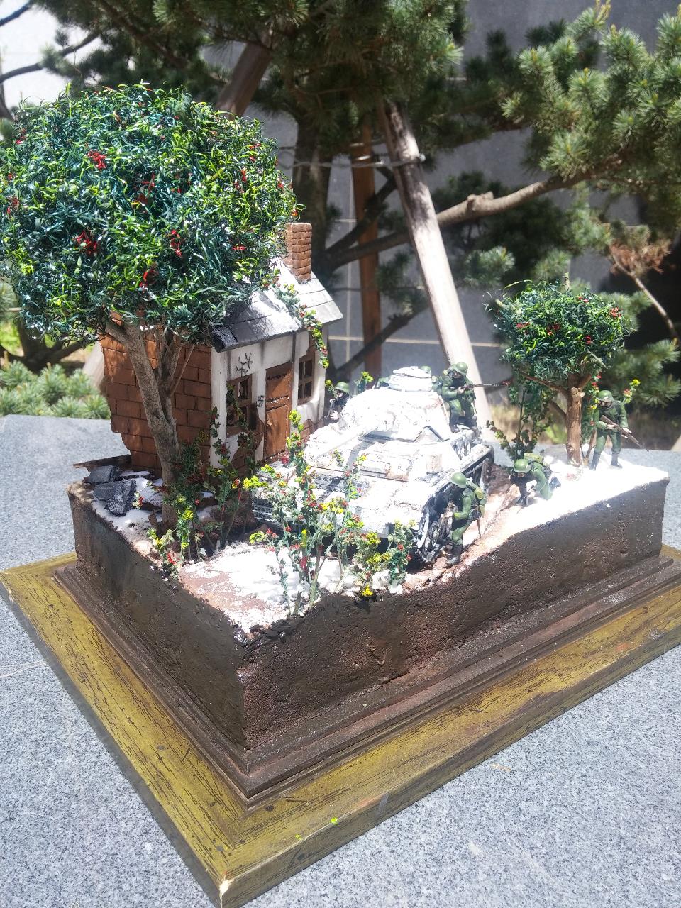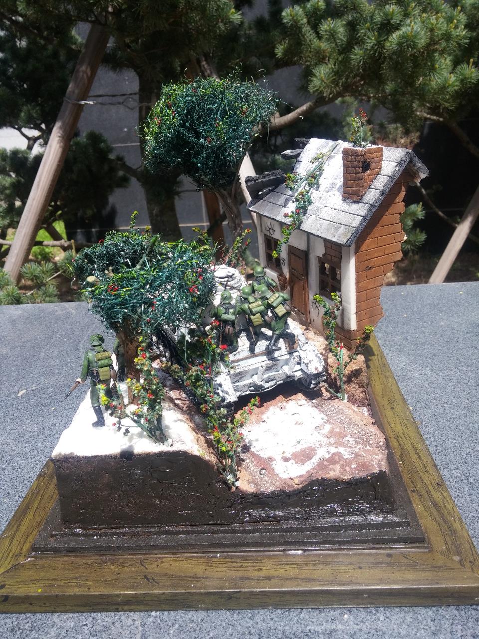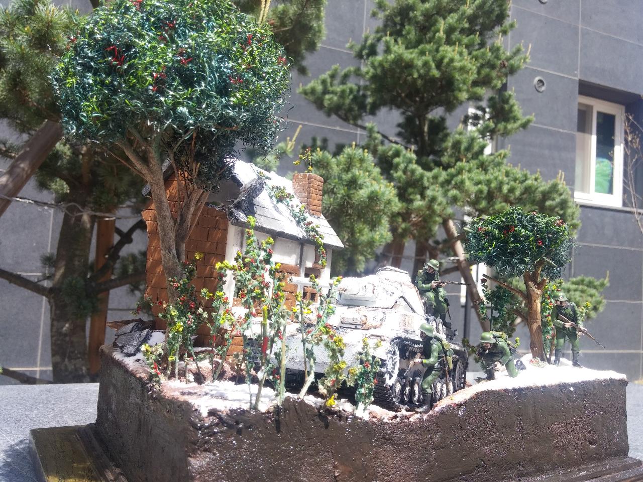 사용된재료:아이소핑크/식소다/나뭇가지/철쑤세미/액자/우드락/4호전차/보병셋