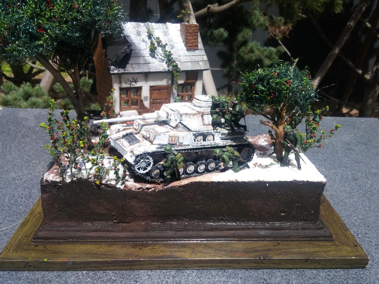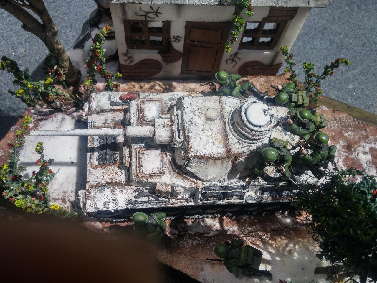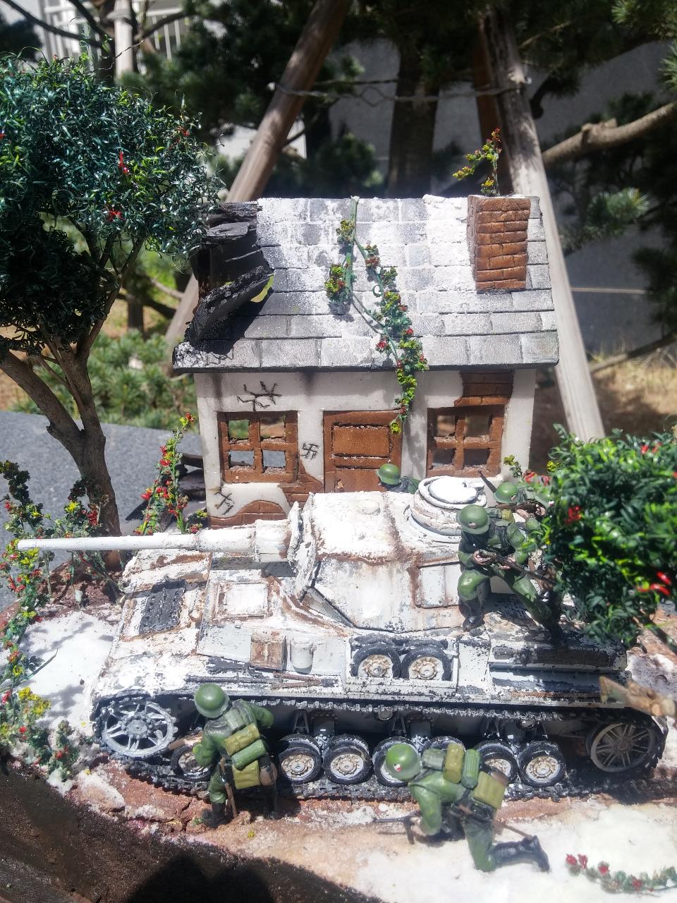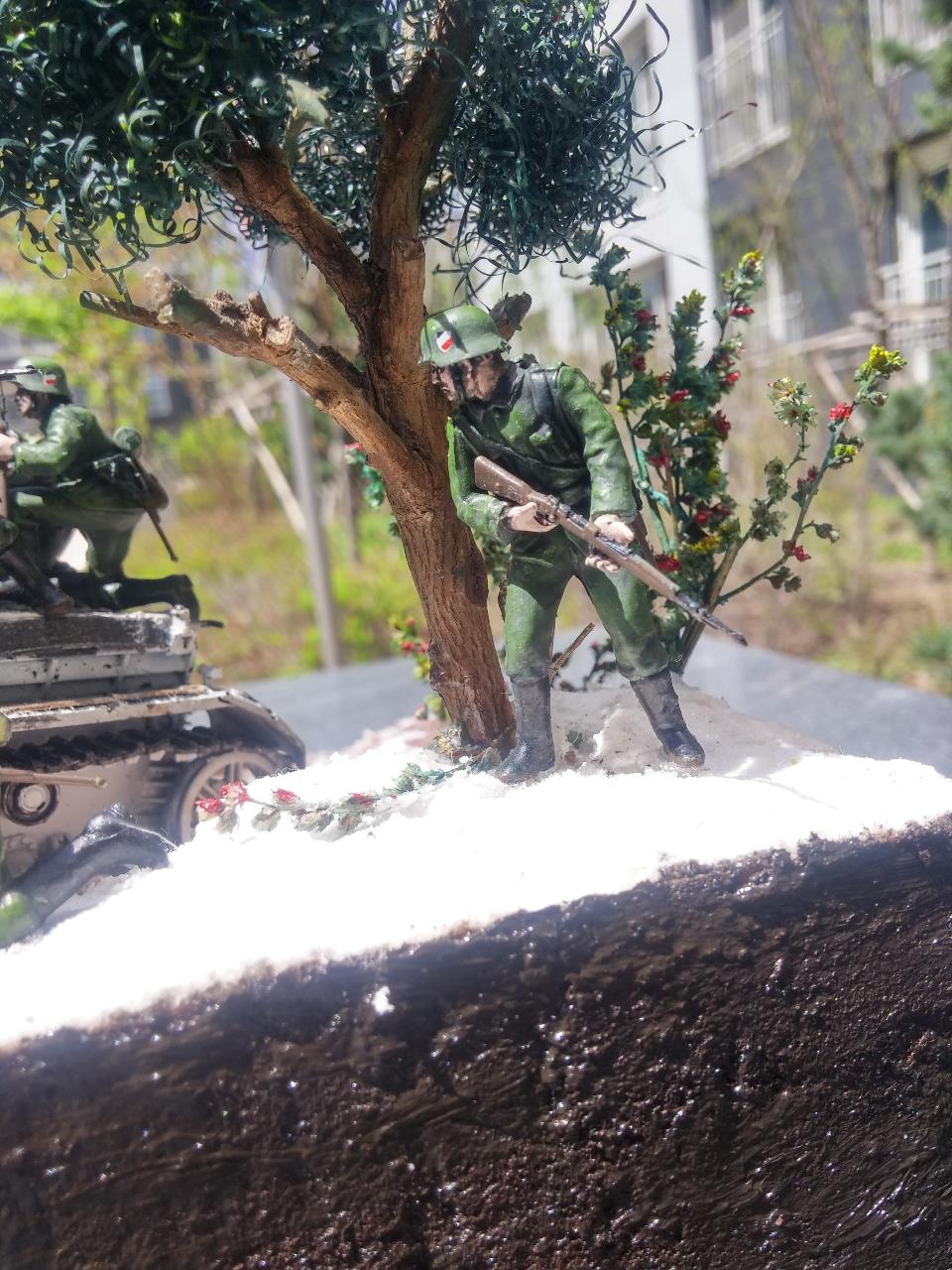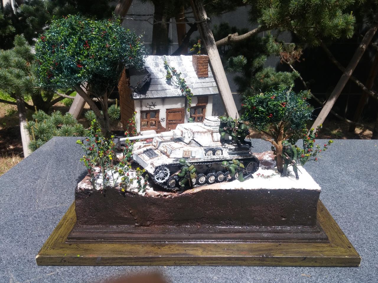 사용된재료:아이소핑크/식소다/나뭇가지/철쑤세미/액자/우드락/4호전차/보병셋