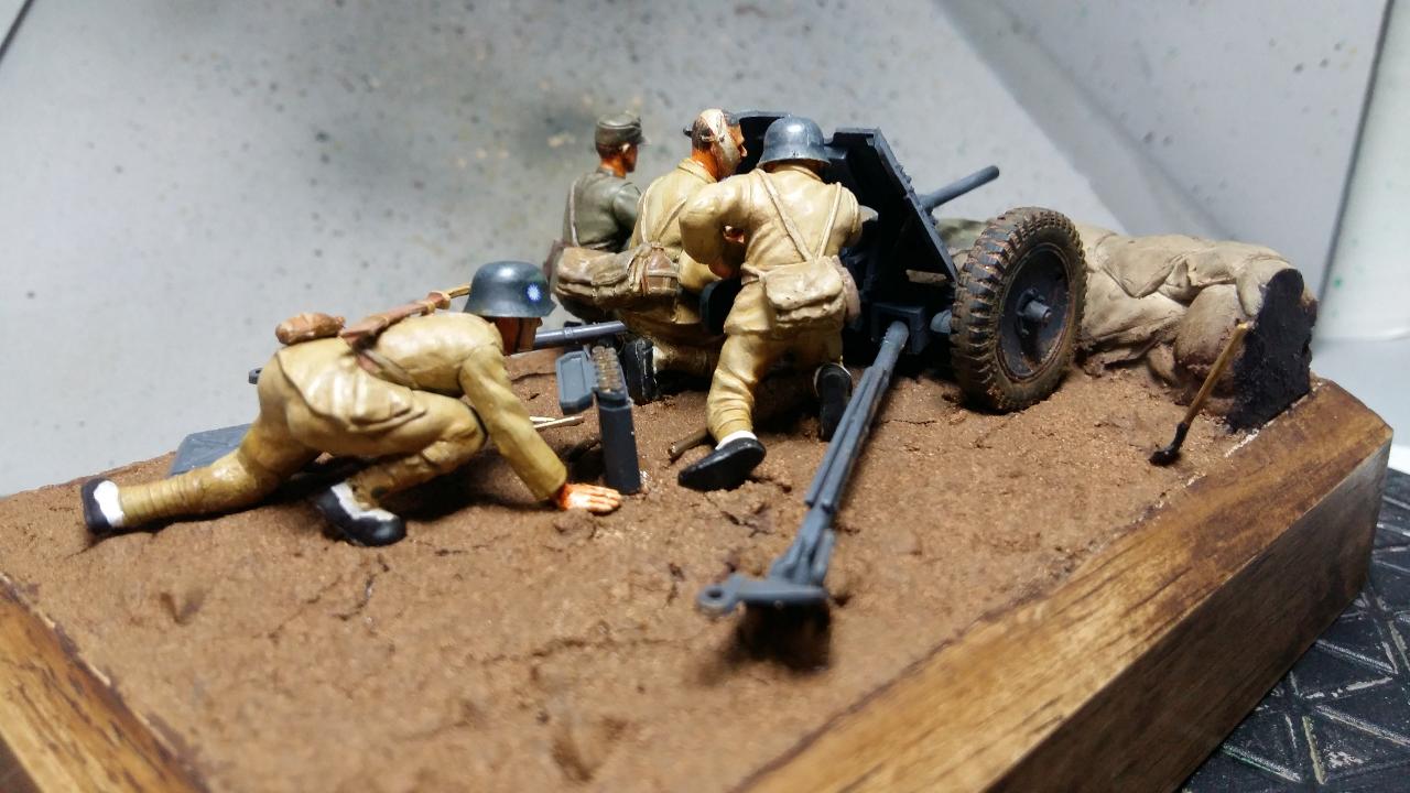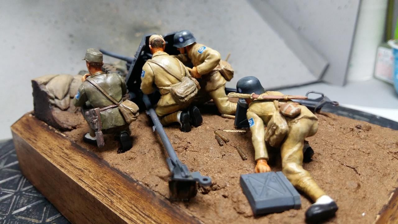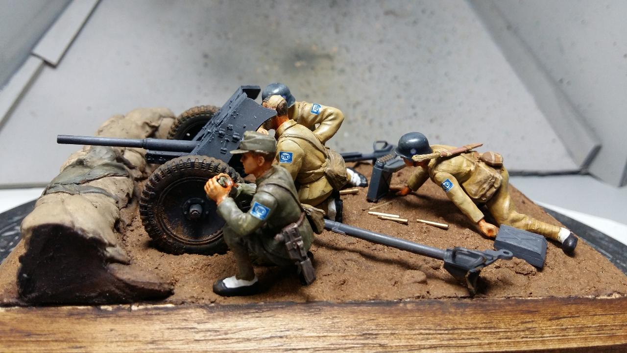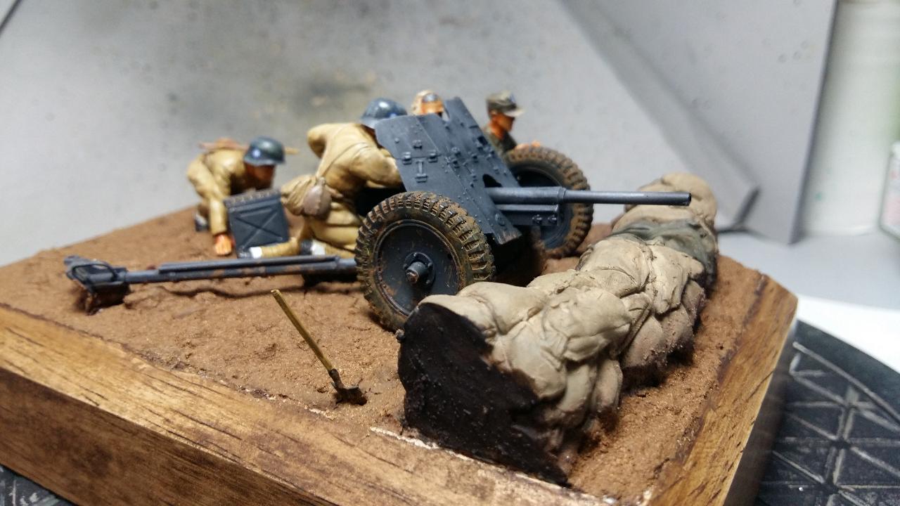 기본 키트는 수십년전에 출시된 타미야제 37mm 대전차포를 베이스로 인형은 일부 개조하여 사용 했습니다.