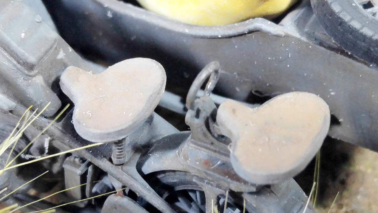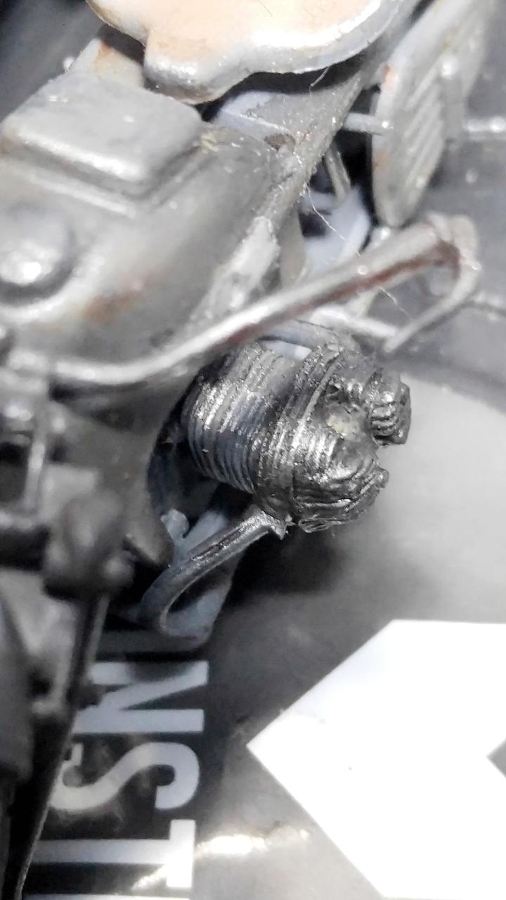 조립 초반에 일어났던 일인데, 사이드카의 손잡이 부품이 망실되었고, 이 꼴을 감당하지 못한 그 성질 때문에 결국은 황동선으로 자작해주었습니다. 롱노즈가 드디어 사용되고, 시이드카에 핀바이스 작업 들어갑니다. 가공된 황동선의 기럭지가 잘 맞네요.