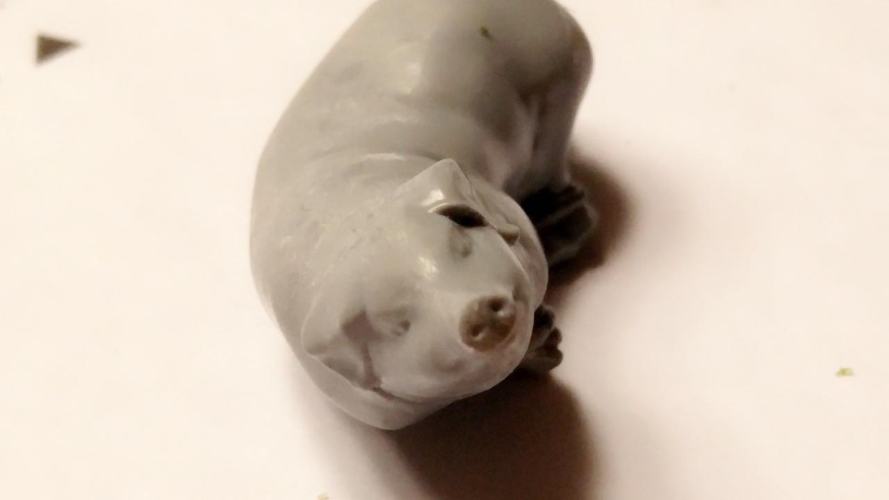 접합선을 퍼티로 매꿔주고, 이어 사포로 다듬어줍니다. 돼지의 코와 귀의 그 생김새를 잘 재현하고 있네요.