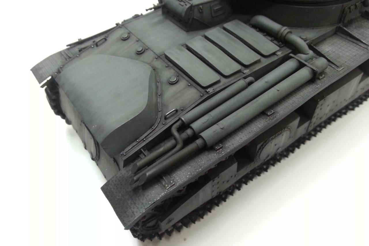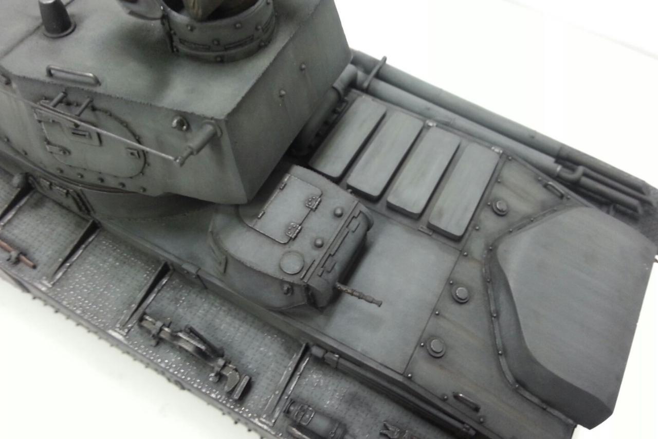 무척이나 어려웠습니다. 그래서 적지 않은 금액임에도 불구하고 출혈을 각오하고 집에 데려 온거지요 ^^. 실차 자체가 실전에 투입된적이 없는 차량인지라 도색의 컨셉은 최대한 "깨끗하게 더럽히기" 로 정하여 진행했습니다. 기본 도색을 할 때 한 번 떨어뜨려서 레진이 깨진 부분과 말실된 부품이 있지만 별로 티가 안나서 그냥 넘어가고 치핑은 생략하고 무채색인 Humbrol Tank Grey 에 명암을 강조하는 방향으로 웨더링했는데, 완성 후 이 녀석을 바라보니 감회가 새롭네요 ^^;: