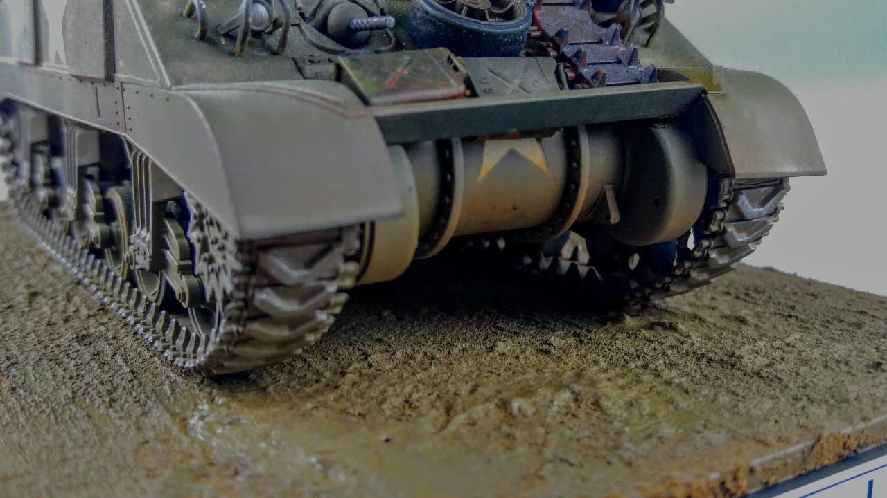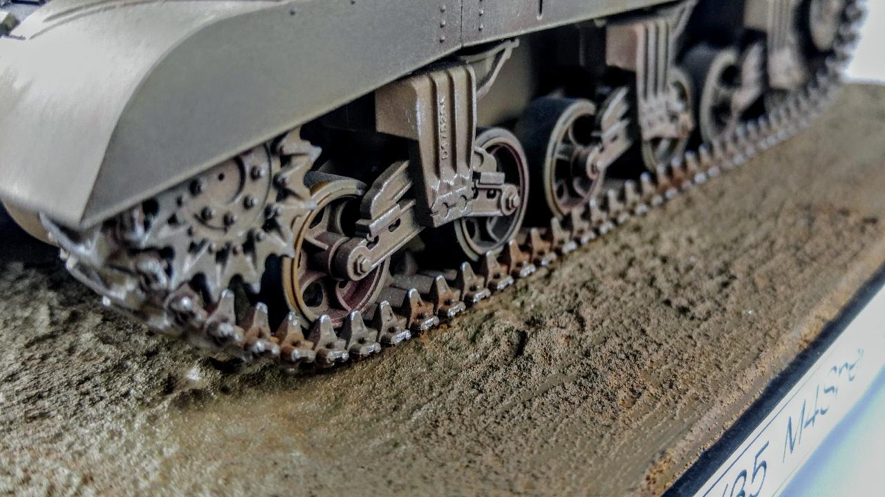 궤도및 차체 하부는 마른 흙 재현을 위해 어스를 에어브러싱 했습니다 이후 궤도에 마찰되는 부분을 실버로 칠해주었습니다
