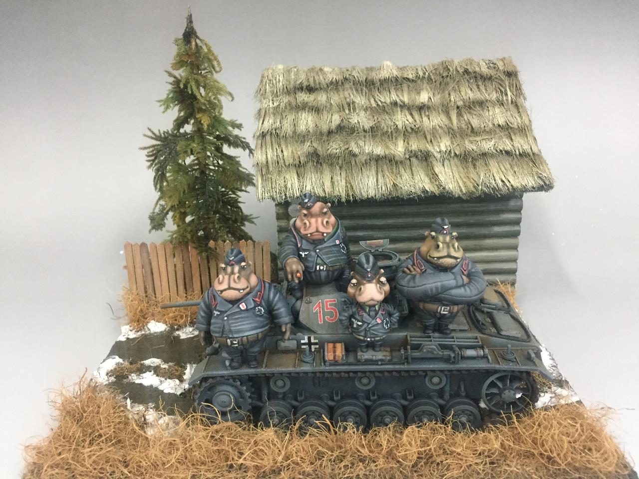예전에 만든 베이스에 이번에 완성한 하마전차병을 한번 배치해 보았습니다