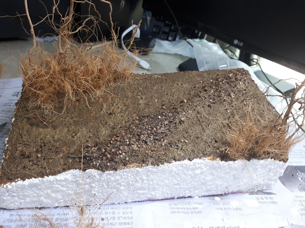 참고로 지면은 아이소핑크를 활용하였으며 그 위에 지점토로 세부묘사를 하였습니다.