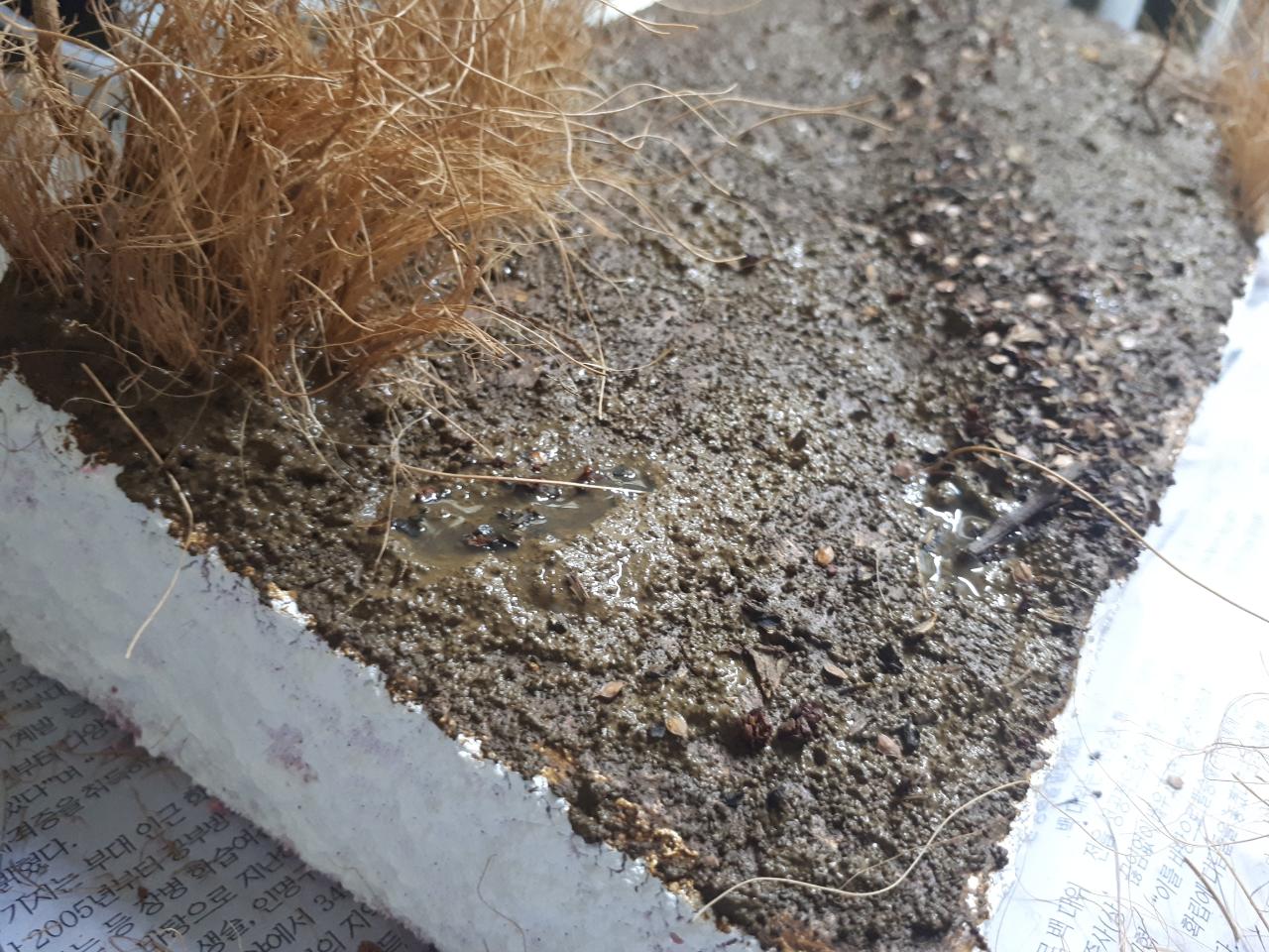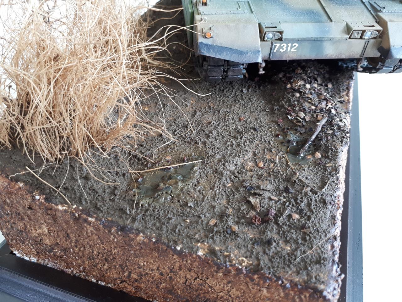 하비페어에서 AK가 팔던 물웅덩이 표현제를 사용하였습니다. 여기까지만 되었다면 매우 좋은 재료였겠으나..... 안타깝게도 엄청난 수축으로 흙표현제를 다 뜯어지게 만드는 위용을 보여주었습니다. 혹시 사용하시게 된다면 흙표현제 따위가 완전 건조된 후에 사용하시는게 좋을듯 합니다.