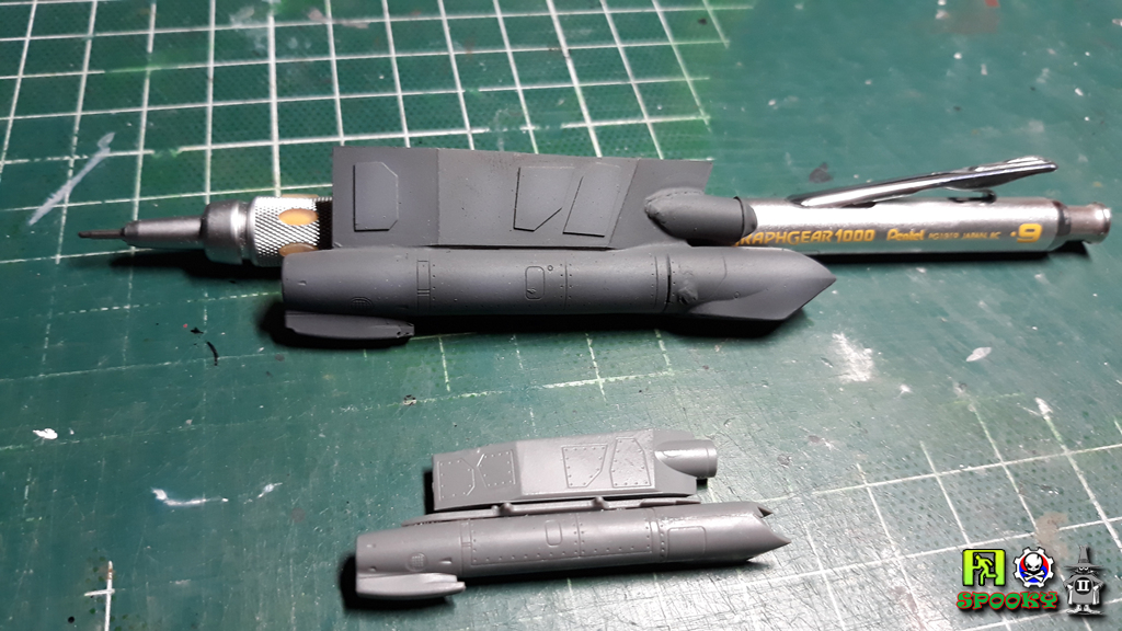 아카데미 1/48 F-15 OIF 스나이퍼 포드 (아래 부품)를 참고해 스나이퍼 포드 연결부(타이거 아이 포함)를 자작해주었습니다.