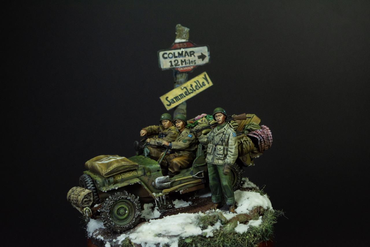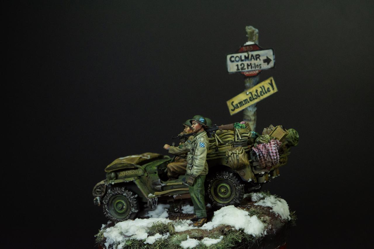 제작한 인형은 윌리스찝에 탑승한 미군은 디데이미니어쳐사 인형이고 헤드는 알파인것이고 서있는 인형도 알파인제입니다, 월리스찝은 타미야제이고 바퀴포함 악세사리는 블랙독제입니다,도색은 거의 아크릴로 하였습니다,