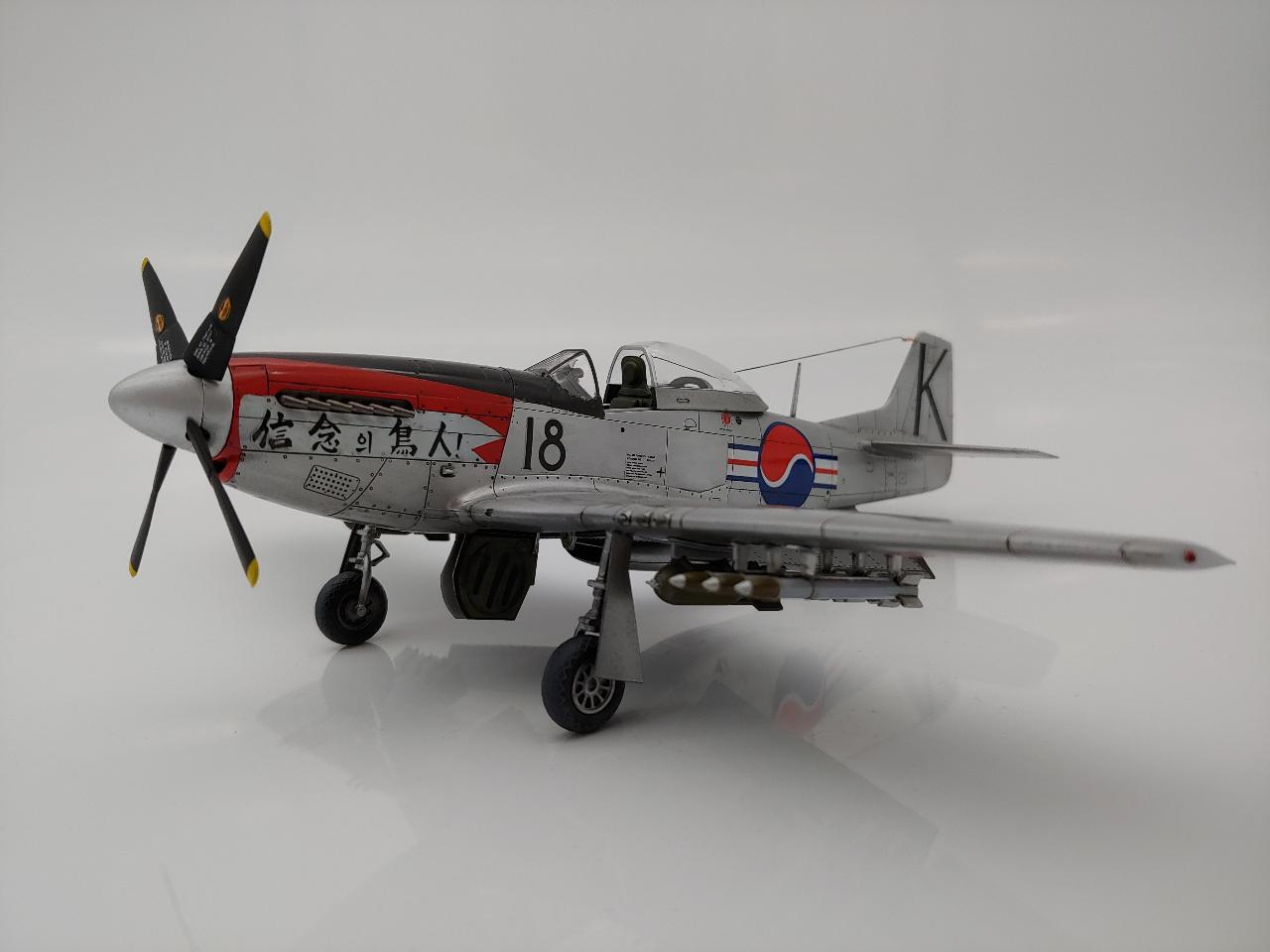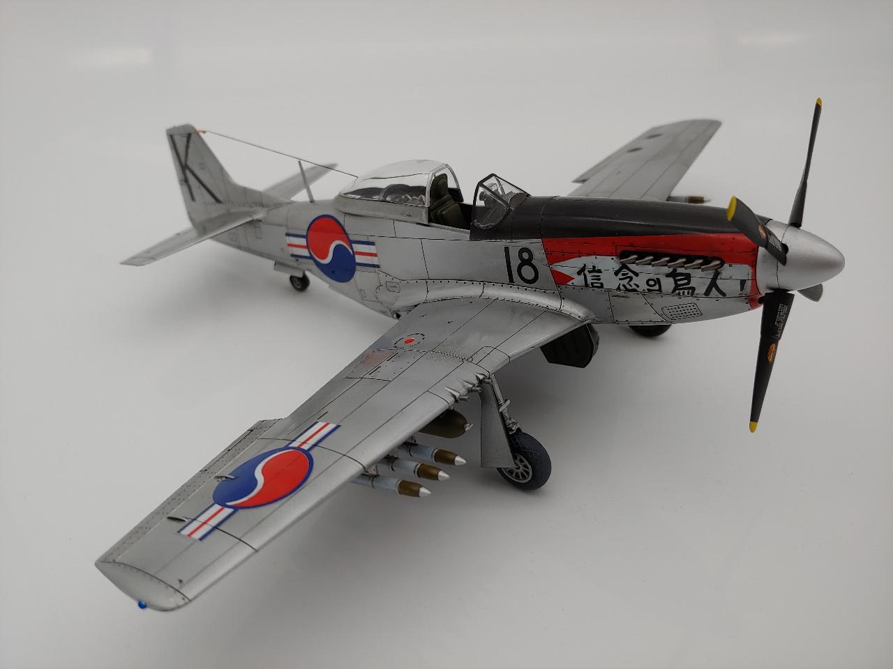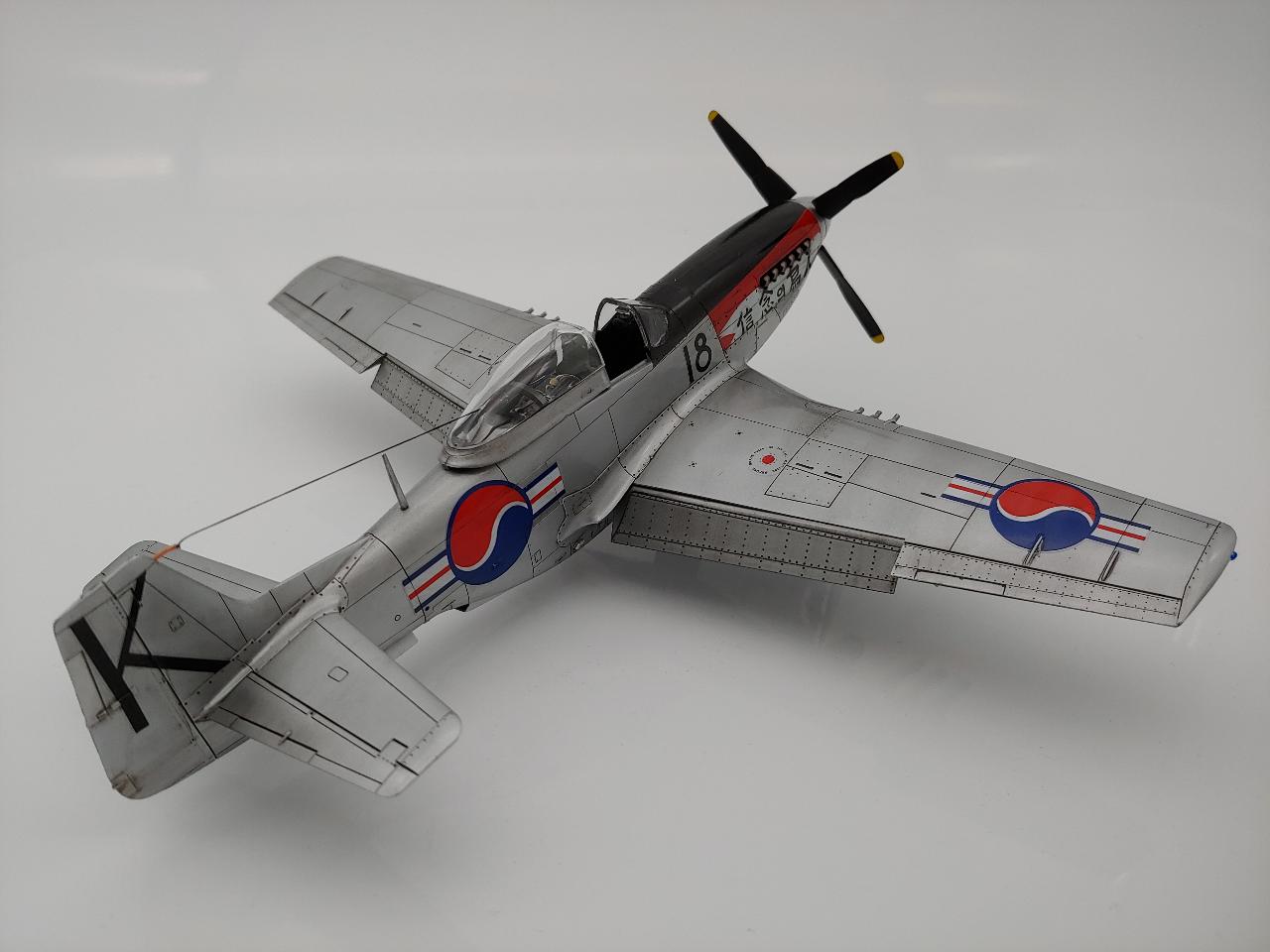 타미아 무스탕을 한국전 참전기체로 만들어보았습니다. 광택을 살리려 노력하였으나 그렇게 빛은 나지는 않네요.