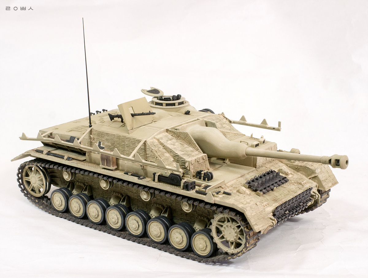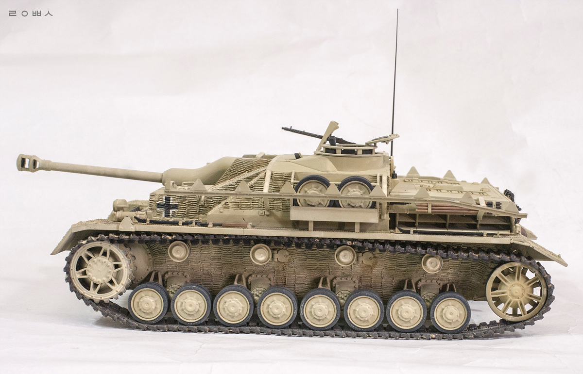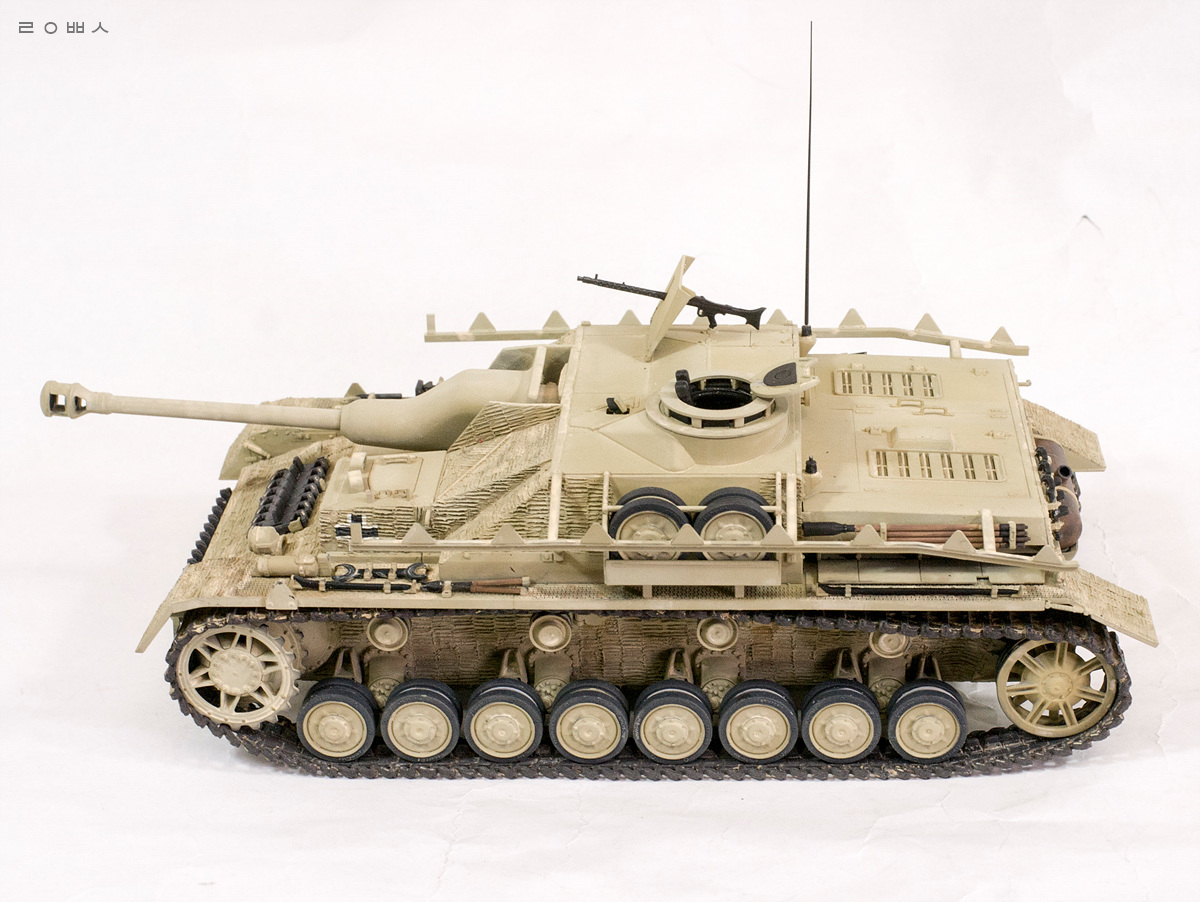 아카데미의 4호 H형의 부품판을 그대로 활용한 신제품! 4호 돌격포를 만들었습니다. 도장과 마킹은 가장 쉬워보이는 44년 중반 이탈리아 전선의 예를 참고하여 빠르게 마무리했습니다 ^^
