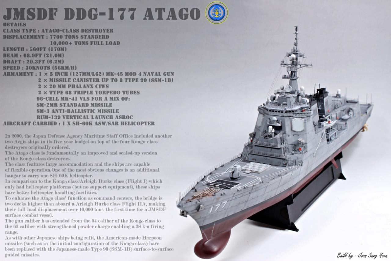 알레이버크급 플라이트IIA를 바탕으로 제작한 이지스함이라고 하는군요. 플라이트I을 참고로 건조된 공고급과는 선미부의 헬기덱으로 차이를 잘 식별할 수 있습니다.
