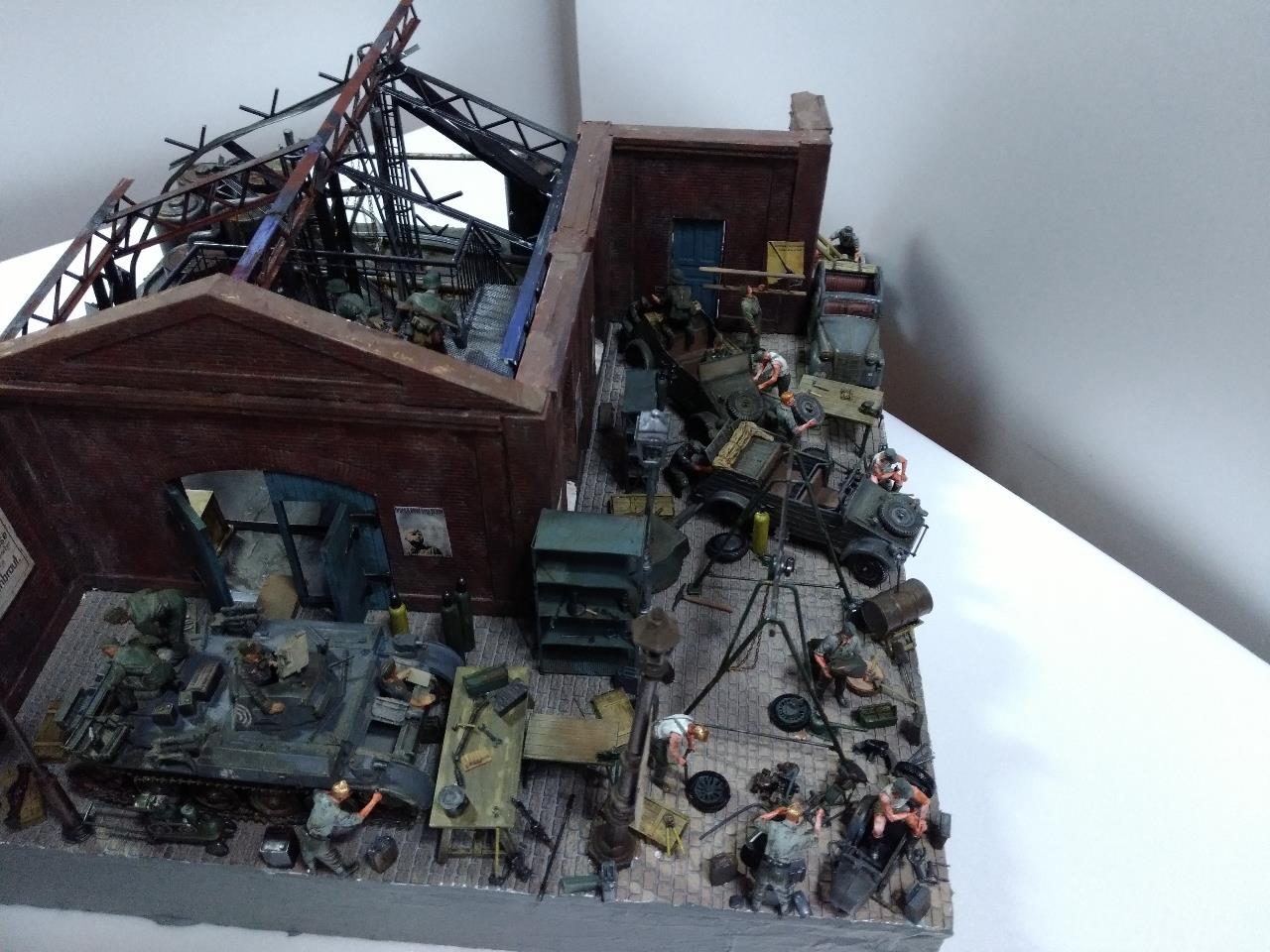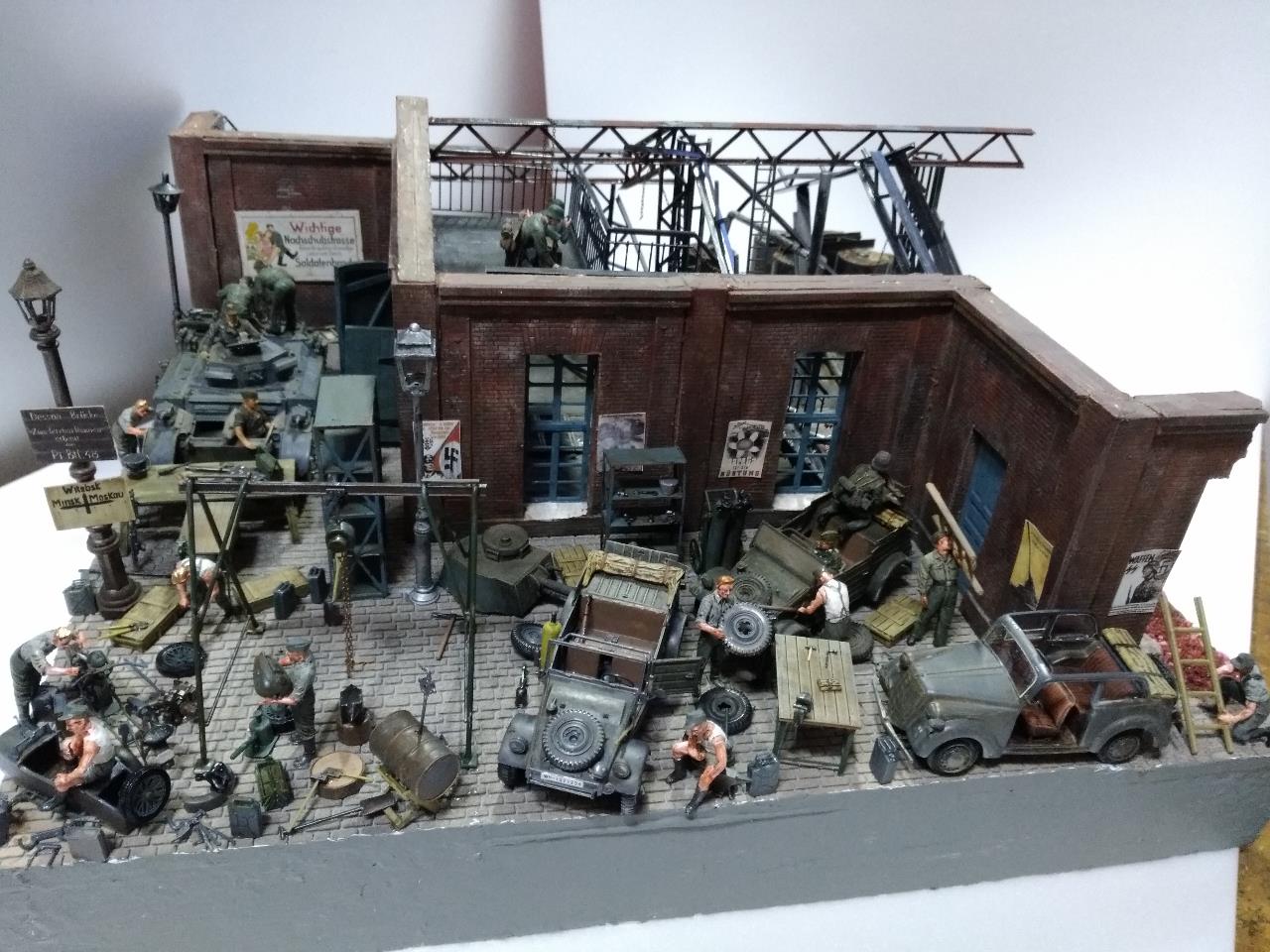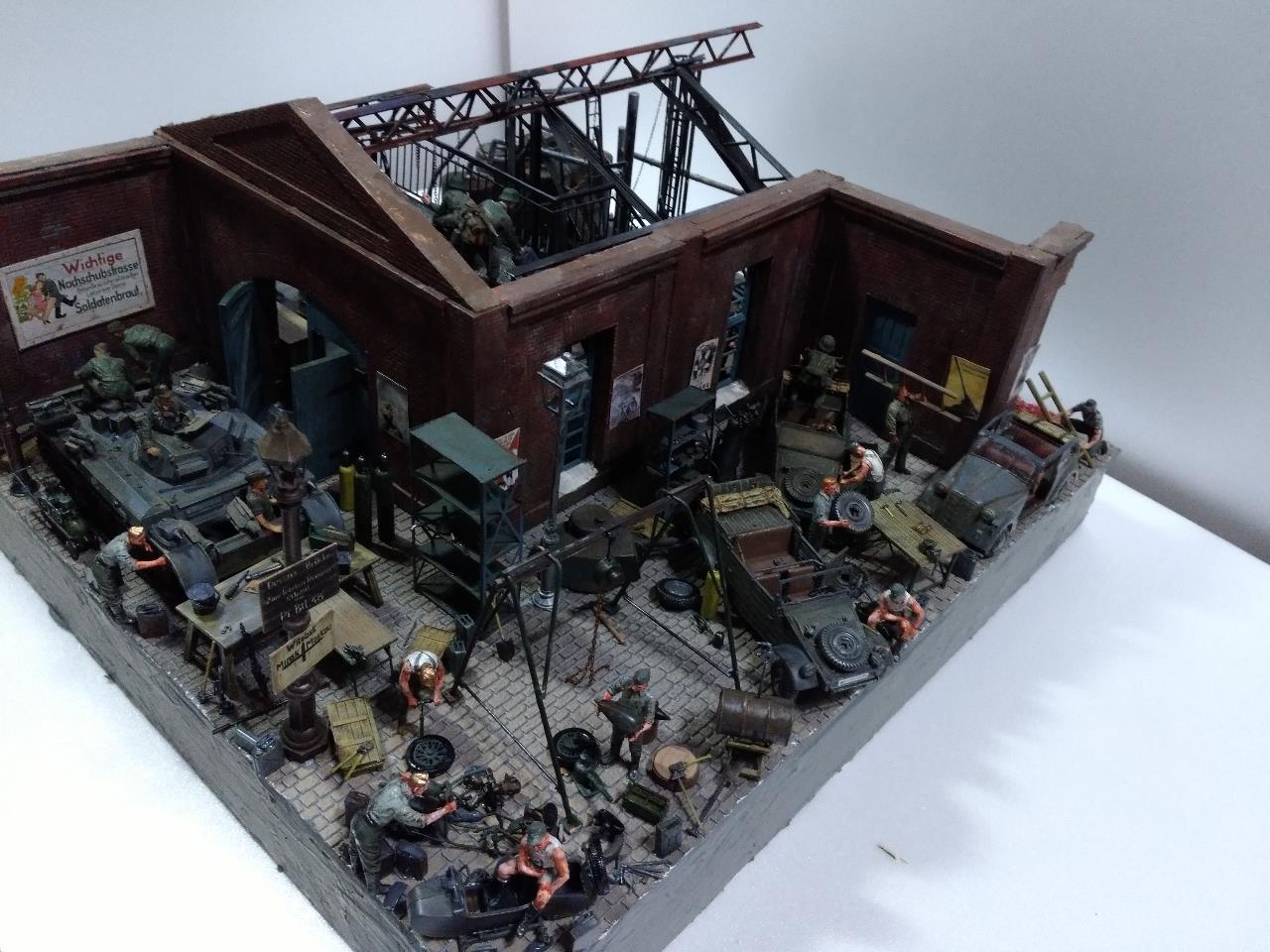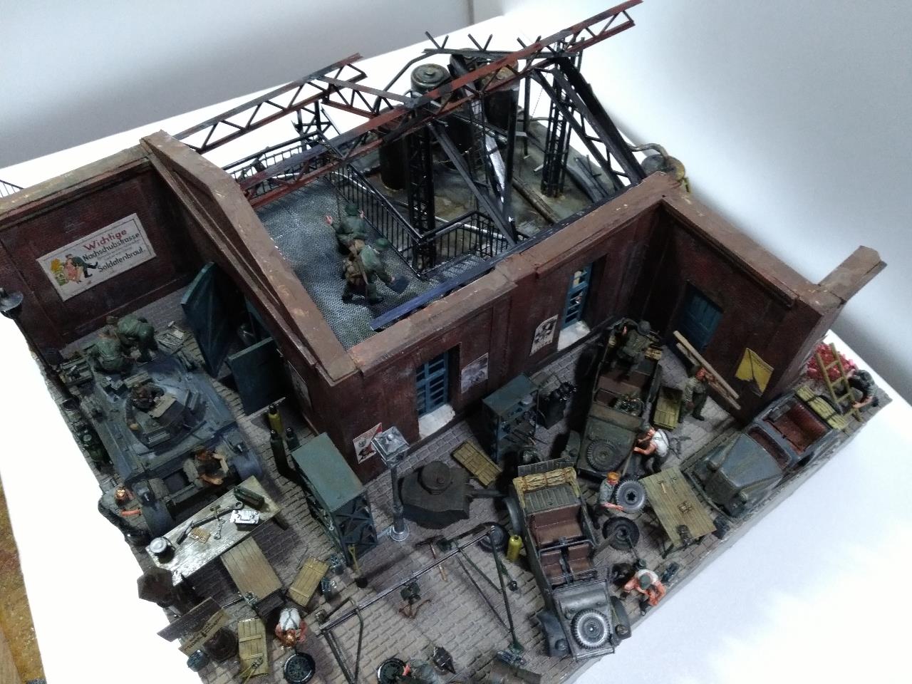 소련 전선의 수많은 공장 지대를 배경으로 독일군 수리병들 모습을 만들었고 지붕을 덮을 생각이었지만 그러다 보니 기껏 만든게 싸악 덮어지는 바람에 지붕을 생략한 버전의 공장을 만들었습니다