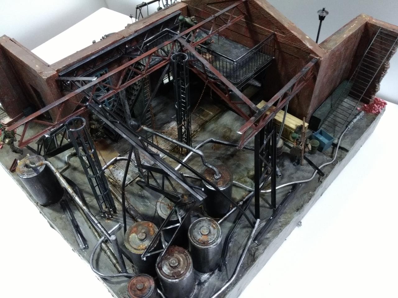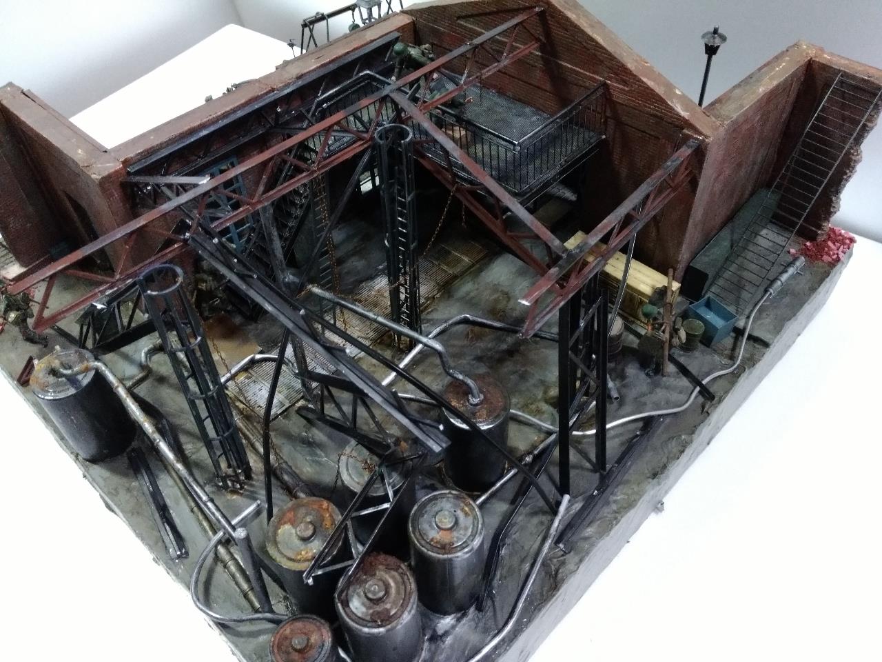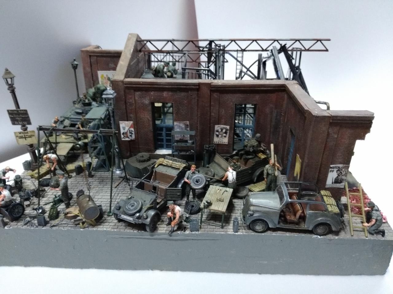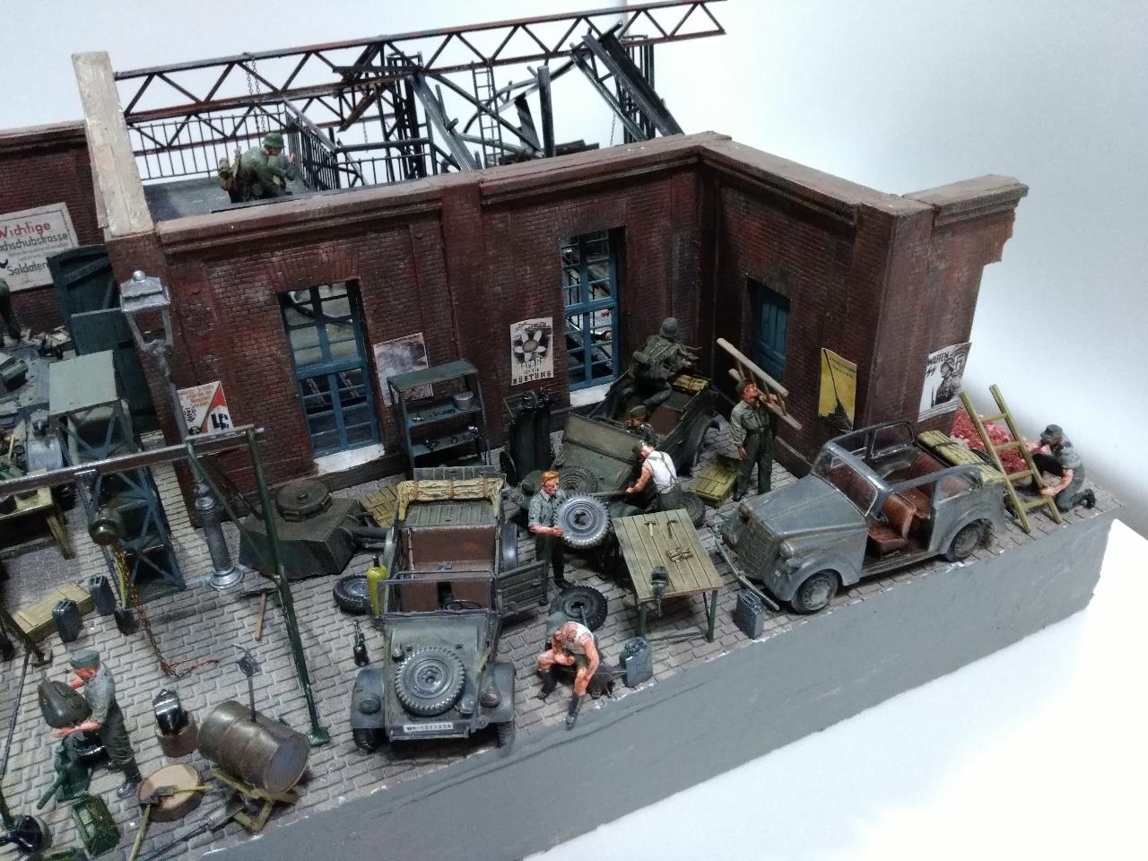 소련 전선의 수많은 공장 지대를 배경으로 독일군 수리병들 모습을 만들었고 지붕을 덮을 생각이었지만 그러다 보니 기껏 만든게 싸악 덮어지는 바람에 지붕을 생략한 버전의 공장을 만들었습니다