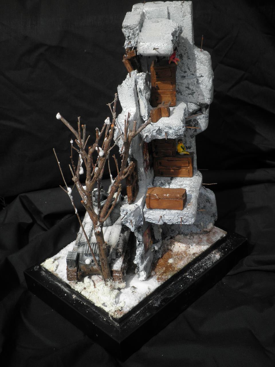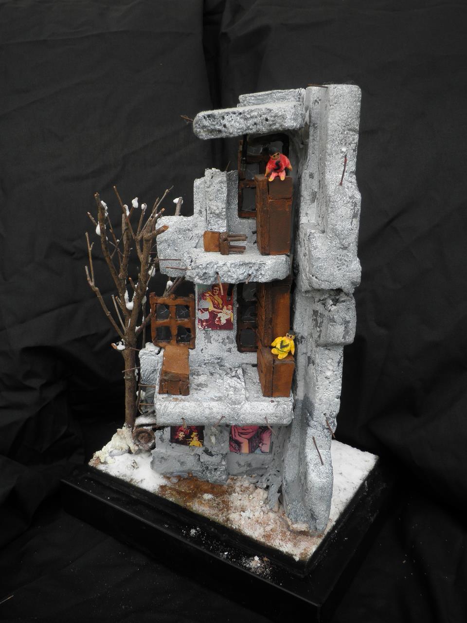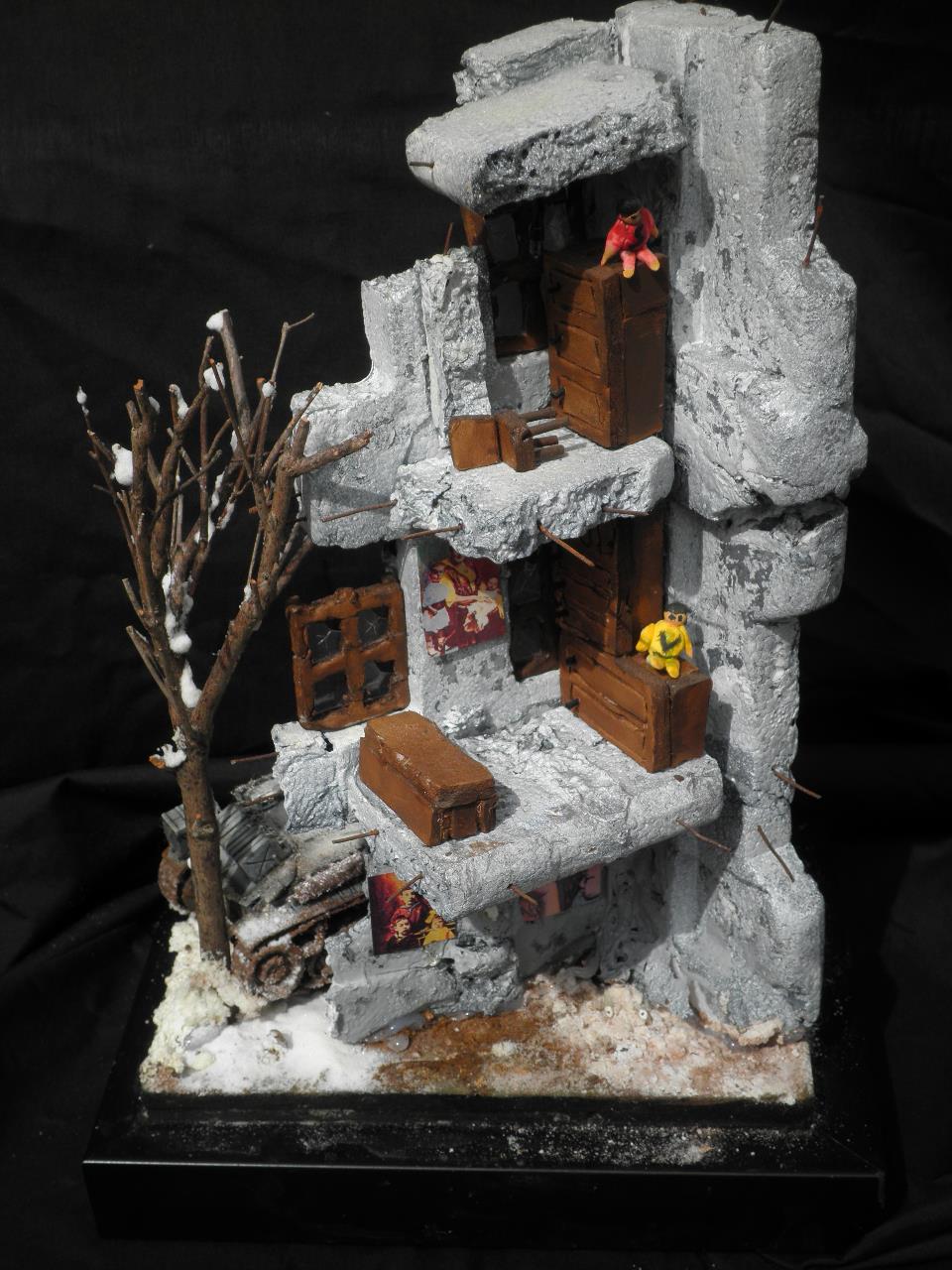 건물은 과일 상자 종류의 스치로폴