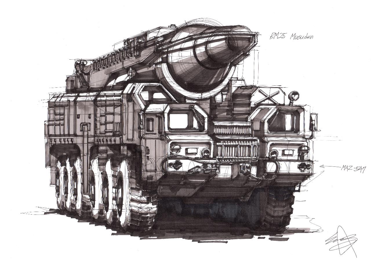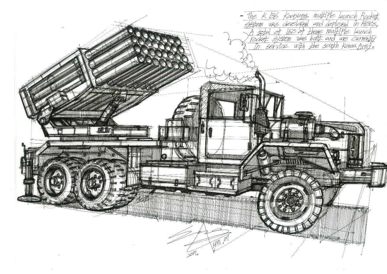 북한군의 열병식때 등장하던 미사일 운반 차량입니다. 중국의WS 시리즈와 디자인이 유사해도 너무 유사하여 북한으로 군수물자를 제공해 준것 아니냐는 의문을 증폭시킨 주인공입니다. 인민군 장비 연구겸 그려보았습니다.