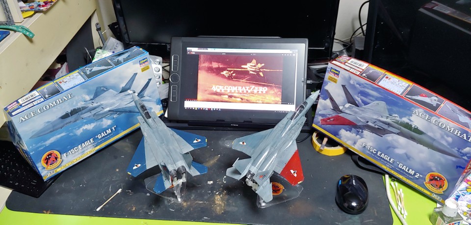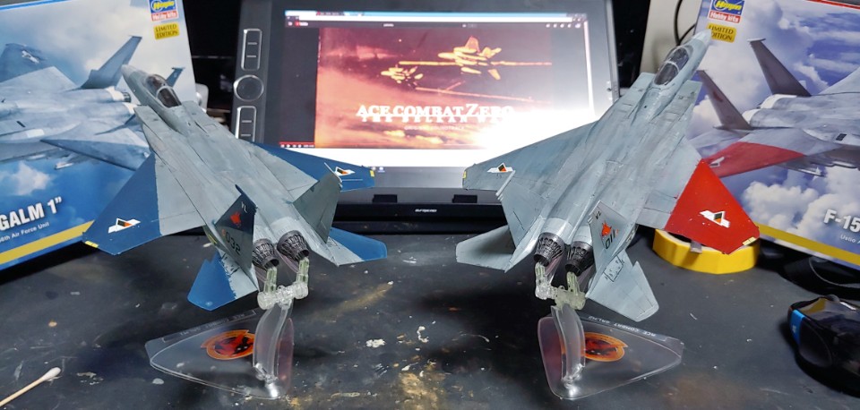 에이스컴뱃 제로에서 주인공 편대로 등장한 가름편대입니다. 제가 알기로는 인원이 더 있다는걸로 알지만 이 둘만 키트화 된 모양이에요.