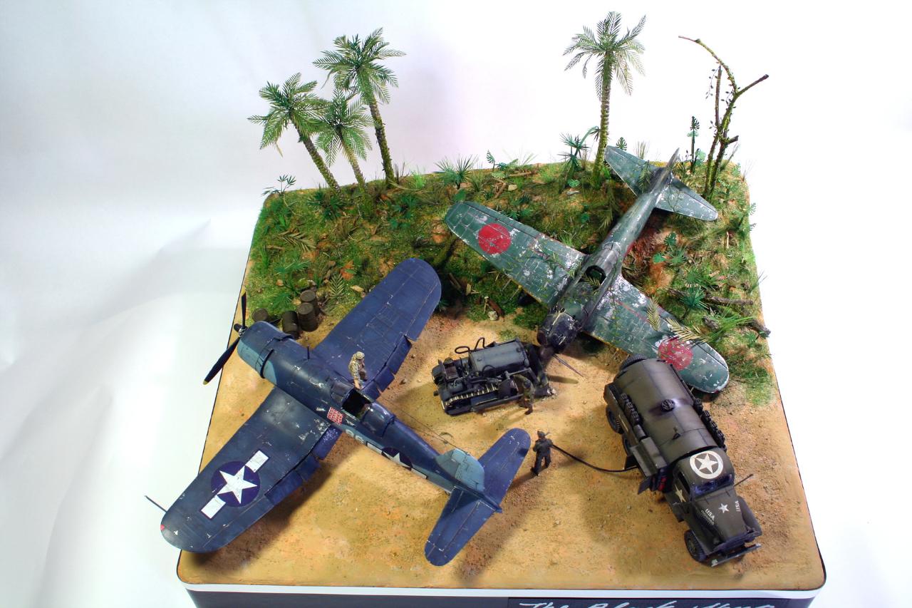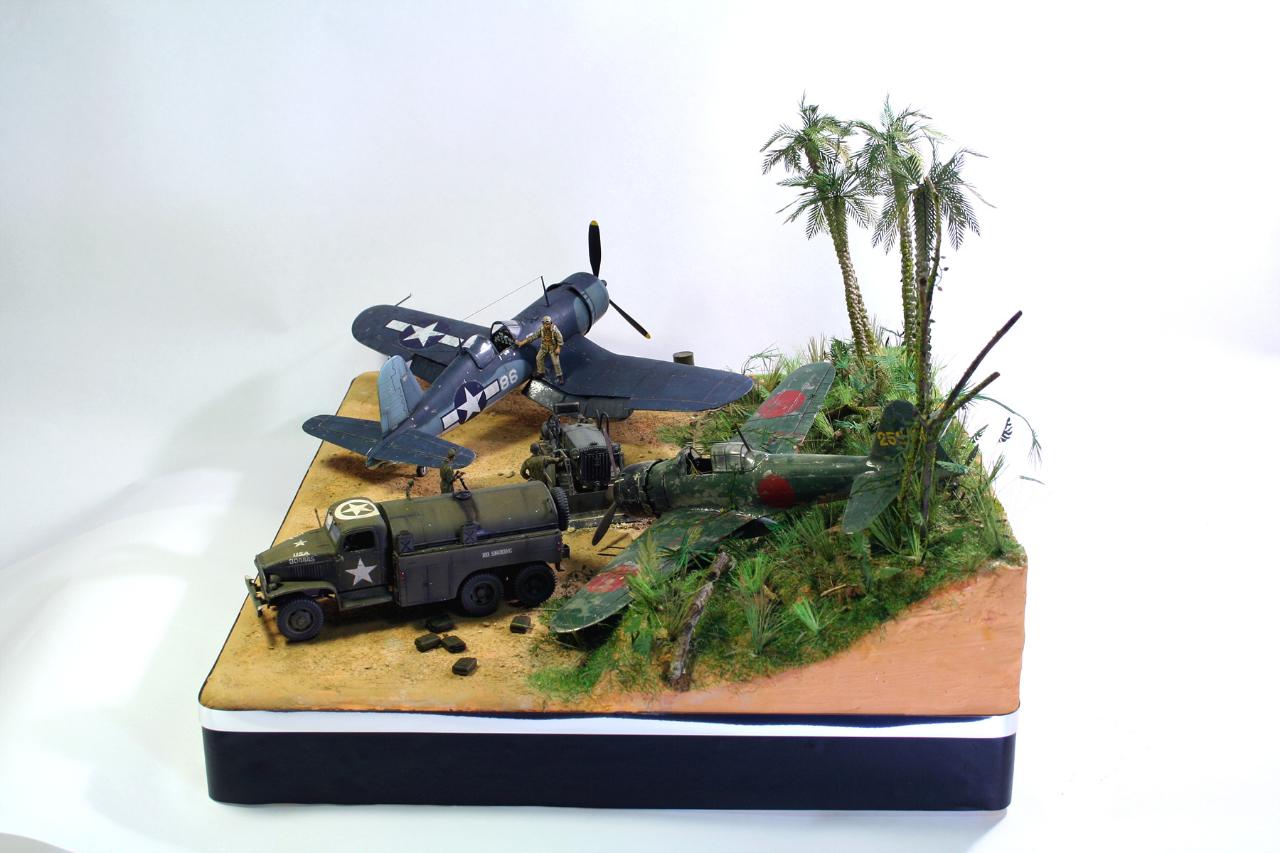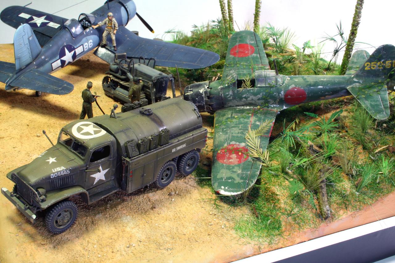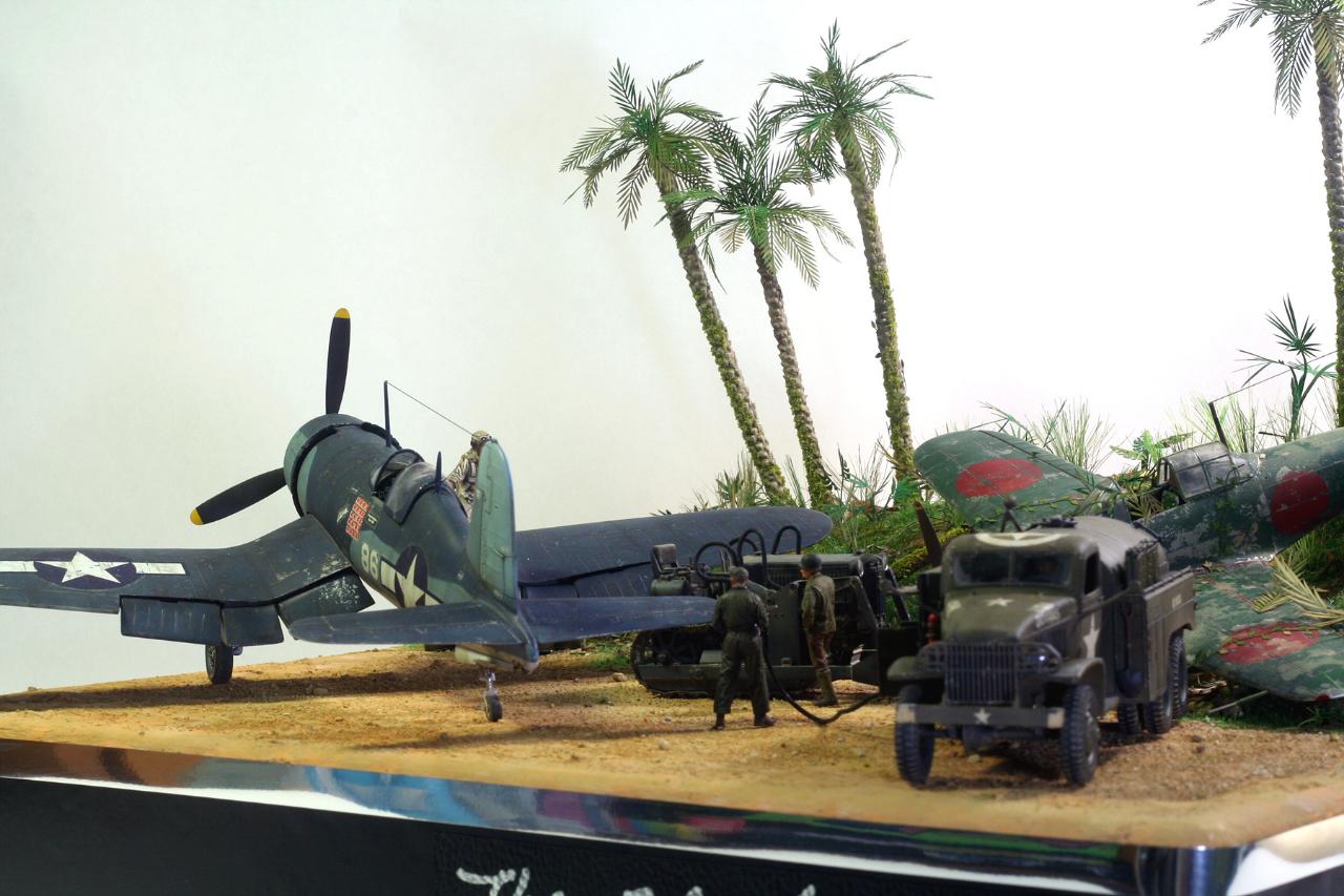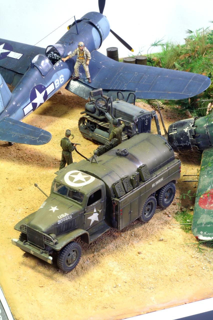 들어간 키트는 1/48 아카데미 f4u-1d 타미야 1/48 zero, fuel truck, komatsu bull dozer, 악세사리키트가 들어 갔습니다.