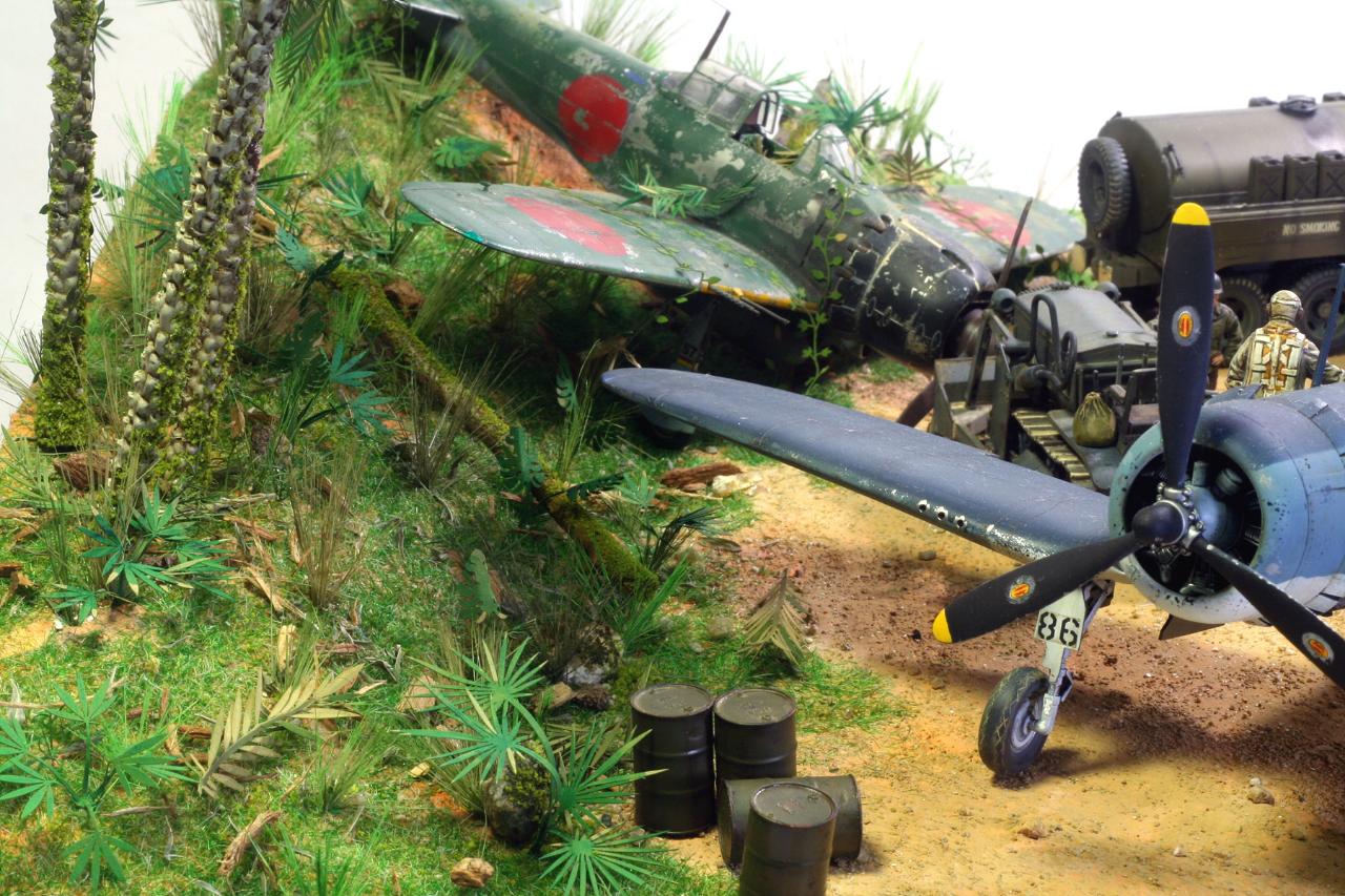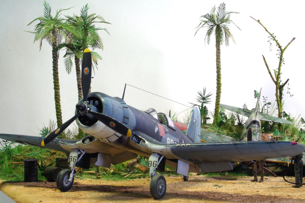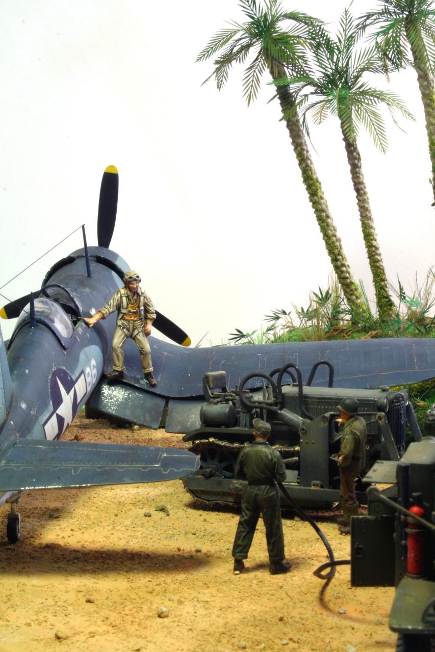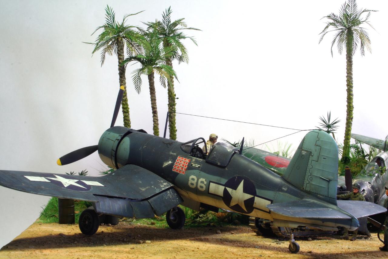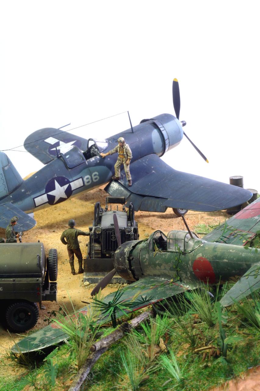 일본군 비행장을 접수 하고 제로를 구석에 쳐박은 후 VMF 214 BLACK SHEEP 비행대의 전개 모습을 그려 봤습니다~~