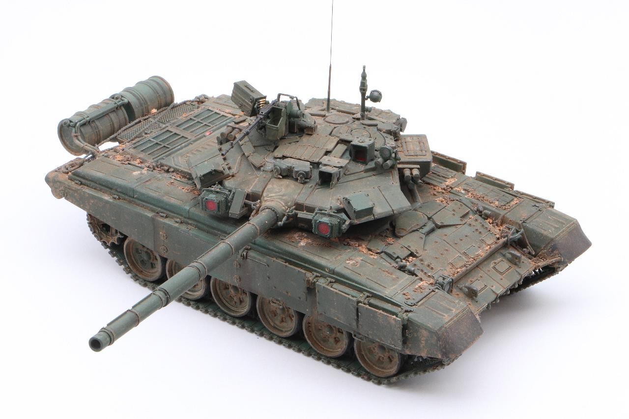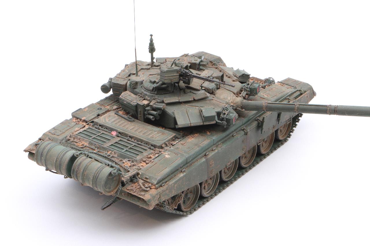 잘 아시는 즈베즈다의 T-90입니다. 이게 단점이 플라스틱의 재질이 너무 않좋더군요. 잘 부서집니다... 그러나 싼가격에 T-90을 만들 수 있다는 장점이 있습니다. 얼룩무늬가 귀찮아서 아크릴 단색과 심한 웨더링으로 커버해 주었습니다.