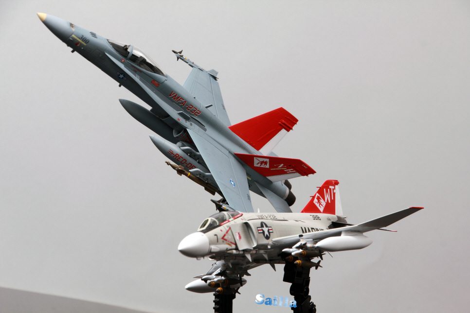 1/72 F-4J 레드데블스에 1/72 F/A-18C 호넷 레드데블스를 추가해 완성해보았습니다.