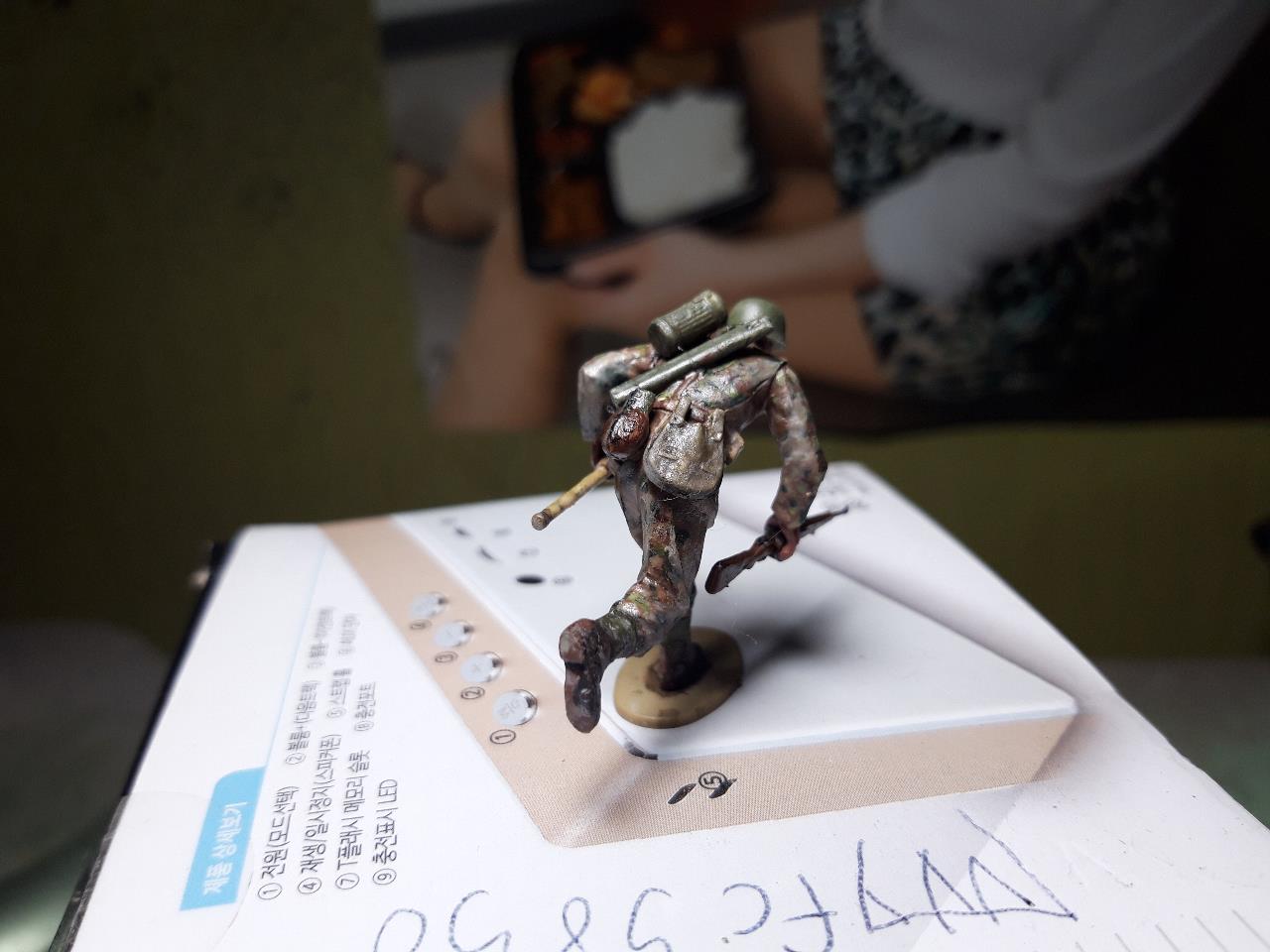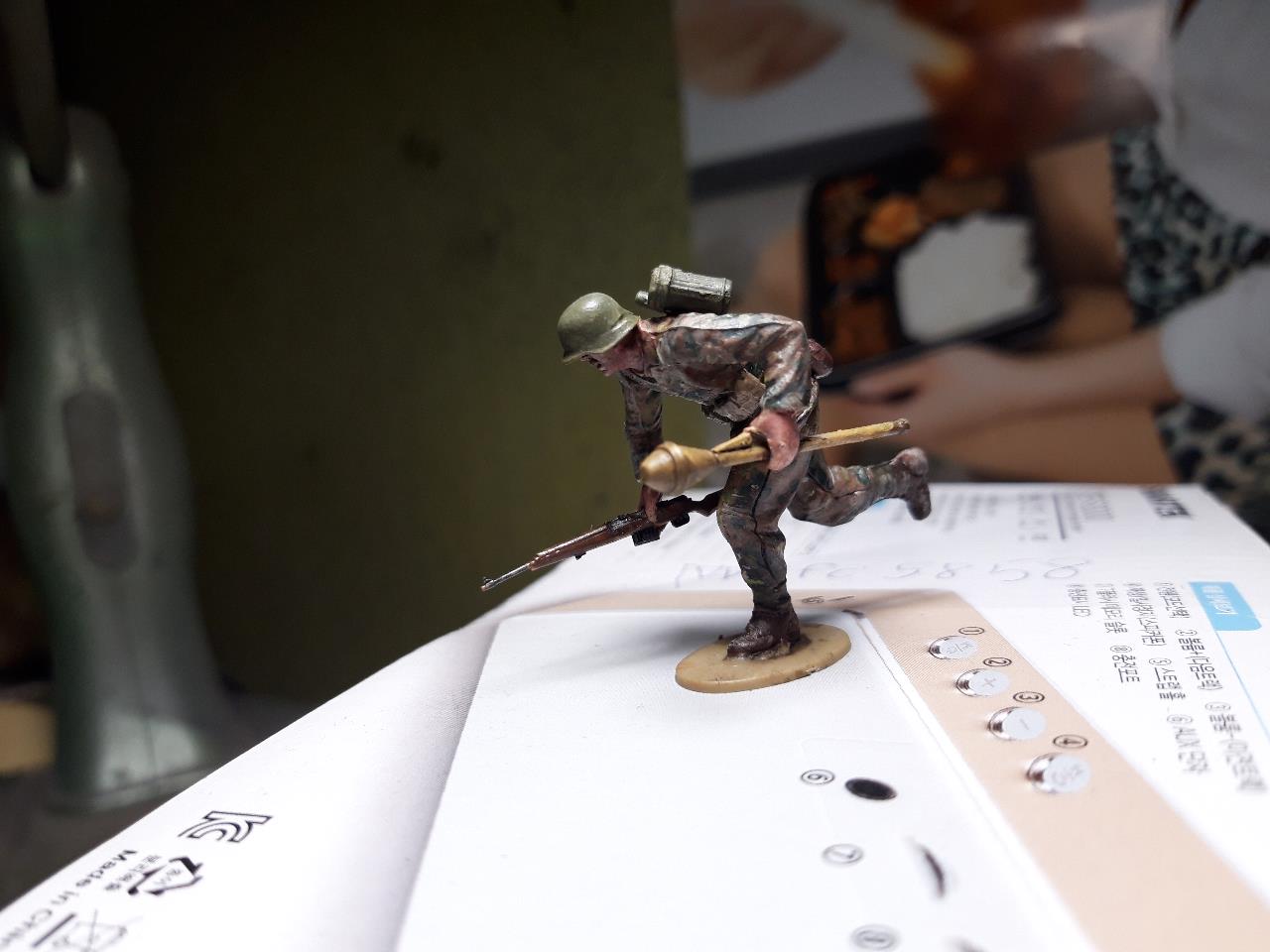 인형 도색 연습 삼아 제작하고 도색 하였습니다. 타이야 아크릴로 도색하고 타미야 패널 라인 갈색으로 워싱하고 타미야 아크릴 버프로 드라이버러싱을 해주었고 얼굴 피부색은 AK사의 스킨 엔드 컬러로 도색하고 눈은 타미야 아크릴로 그려 주었어요. 부족한 작품이라도 잘 감상해 주시면 고맙겠습니다.