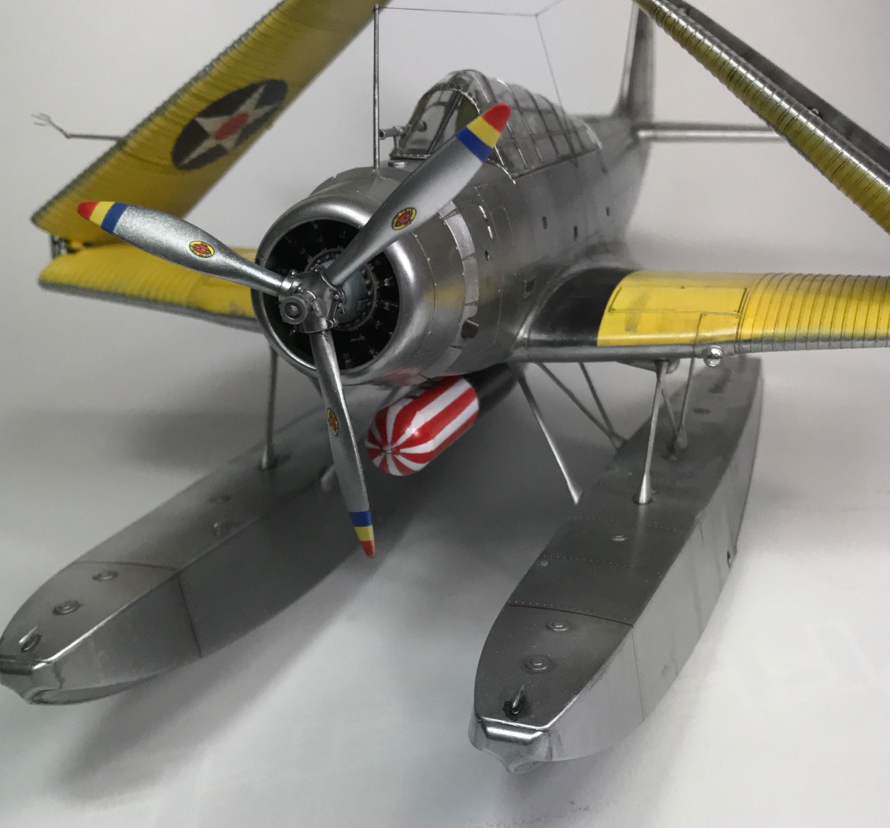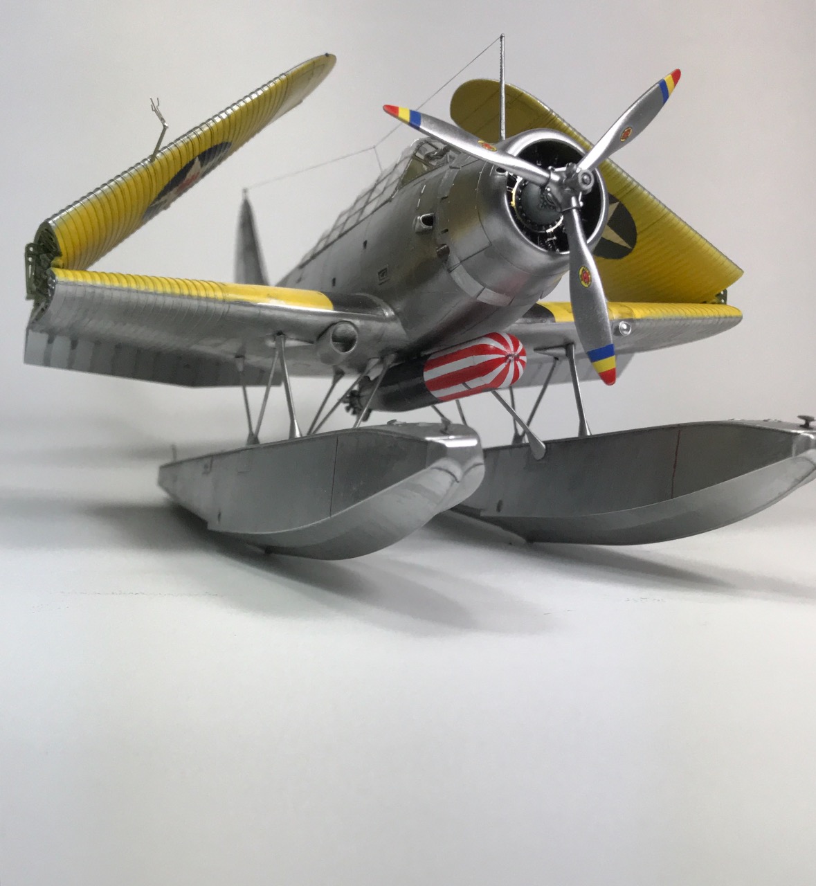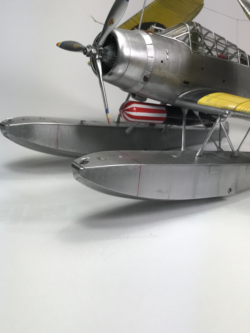 무장을 동체중앙에 해야하기 때문에 푼톤(보트)을 양쪽에 장착하는 더블보트 형태입니다. 이러면 무게가 많이 나가서 일본기들은 중앙에 한개만 있는 형태로 만들기도 하죠.